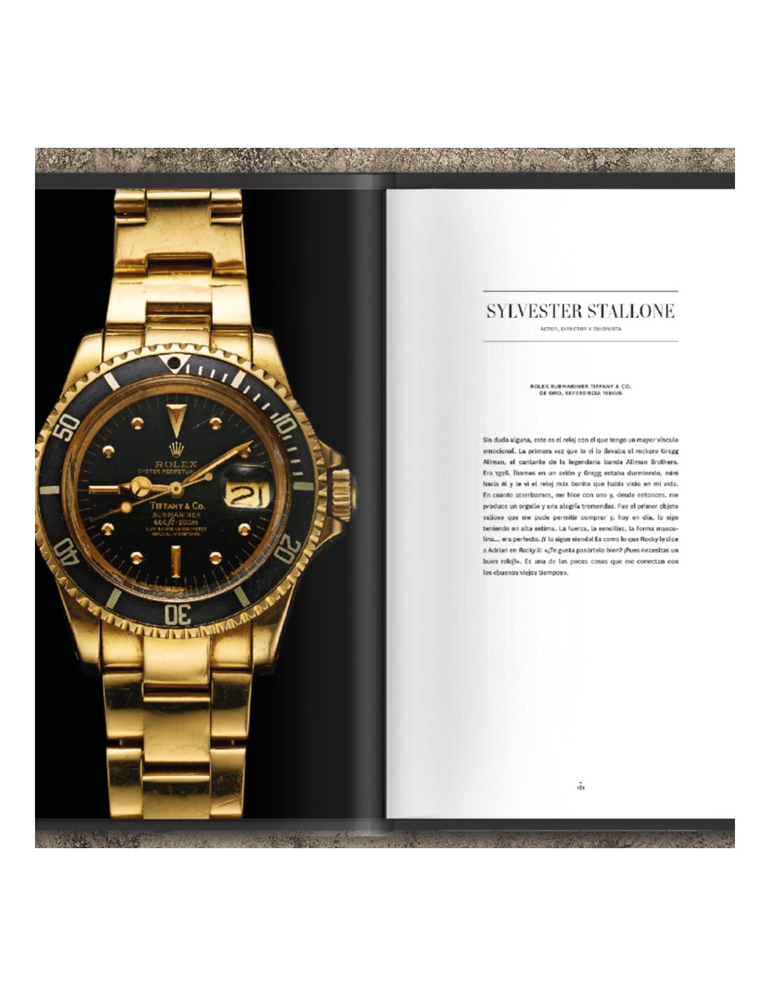 Recuerdos, emociones, historia y estilo: todo cabe en una pequeña joya en la muñeca.Conocerá los relojes de Alain Delon, Sylvester Stallone, Ralph Lauren, Steve McQueen y Giorgio Armani. Pero no se trata sólo de nombres famosos. El libro muestra el vínculo profundo y personal que los hombres forman con sus relojes, ya sea una reliquia de su padre, un regalo para marcar un hito en la vida o un objeto que les ha acompañado en los momentos más difíciles de la vida. Cada historia va acompañada de suntuosas fotografías que convierten al libro en una joya de coleccionista.