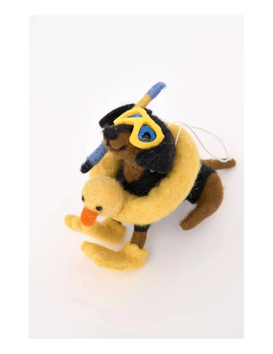 Colgante en fieltro con un perro con flotador, un detalle encantador y divertido.