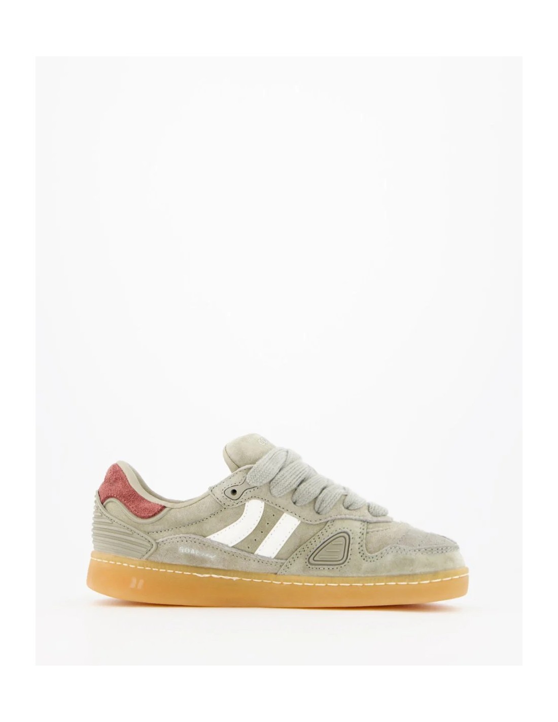 Zapatilla deportiva de serraje con detalles en TPU. Versionamos nuestro icónico modelo GOAL hacia un estilo más “chunky”. Compuesto por una lengüeta y cuello de piel acolchado que dan forma a la zapatilla y cordones planos de algodón en dos tonos intercambiables. Puntera reforzada con pespuntes y dos piezas de TPU, al igual que la zona del talón para aportar carácter y durabilidad a nuestro producto. Suela flexible de goma/caucho que proporciona un agarre perfecto en cualquier superficie urbana. Cuenta con el nombre del modelo “GOAL edge” en el lateral exterior de la zapatilla rindiendo homenaje al modelo estrella de nuestra marca.