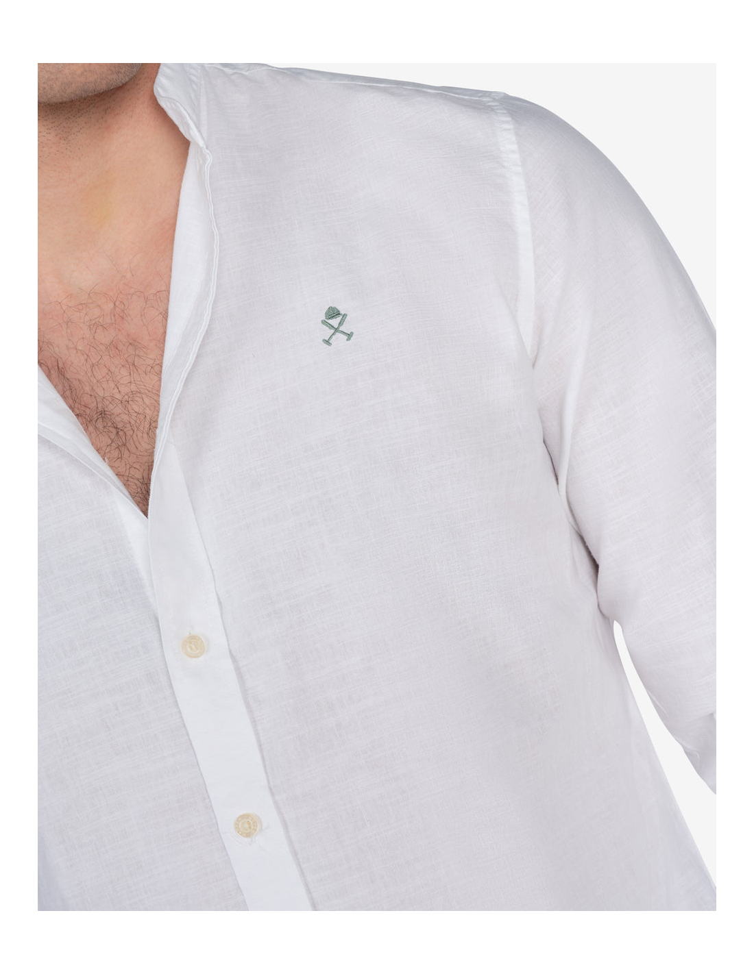 Un detalle que realza su elegancia es el bordado en pecho en contraste. Este elemento sutil añade un toque de personalidad y calidad a la prenda sin ser excesivo. Si buscas una camisa blanca con bordado en contraste pecho que combine sofisticación y discreción, esta camisa cumple con creces. Su confección en una mezcla de lino y algodón la convierte en una ropa de lino y algodón para clima cálido imprescindible, garantizando la circulación del aire y una sensación fresca sobre la piel.