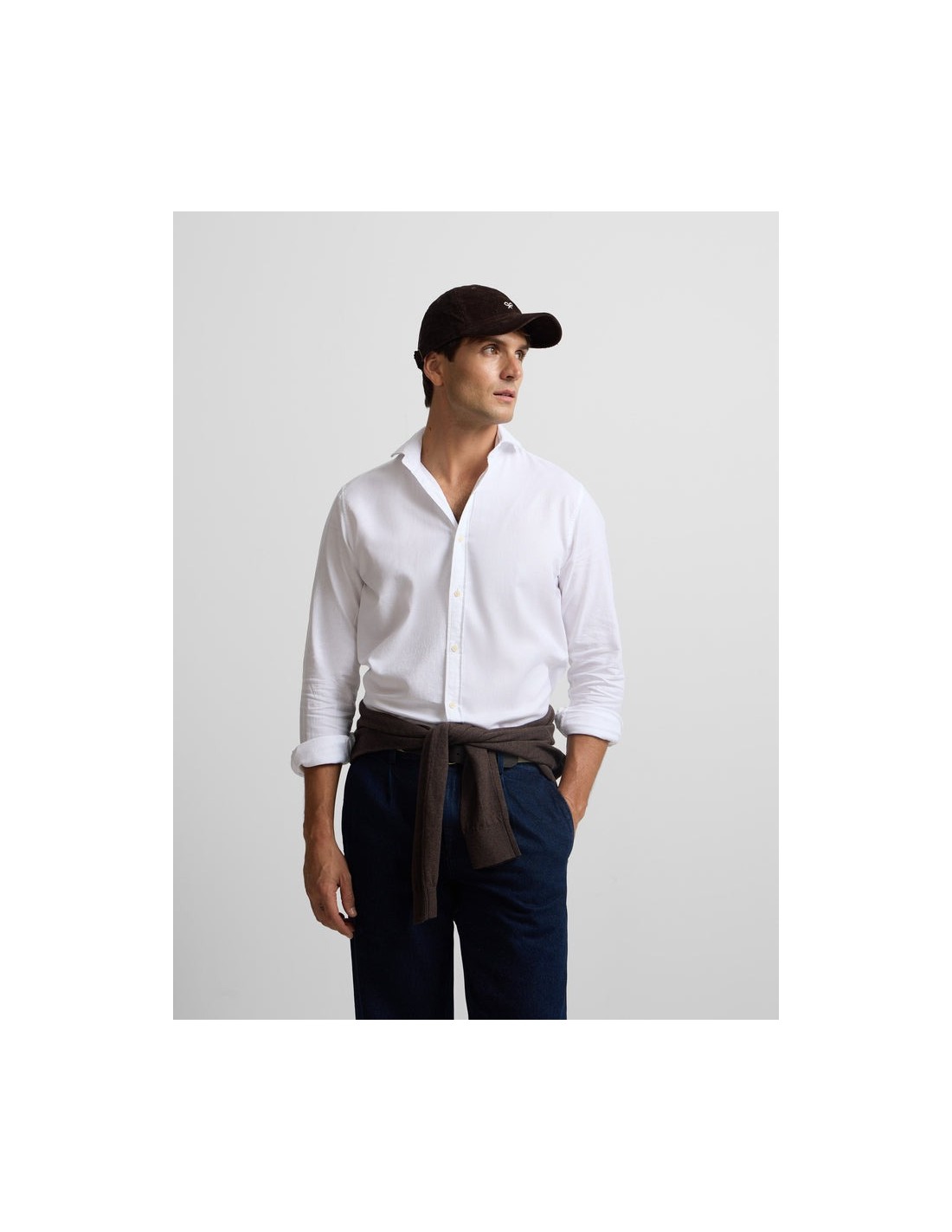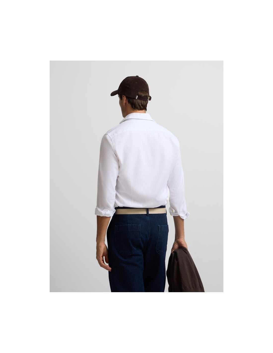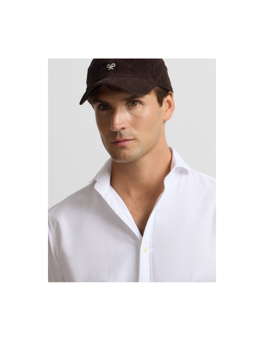 SilbonCamisa sport estructura con tejido en espiga de color blanco confeccionada en 100% algodón, con corte Slim fit. Presenta cuello cutaway y manga larga de puño con botones. Cuenta con raquetas bordadas al tono en el torso.