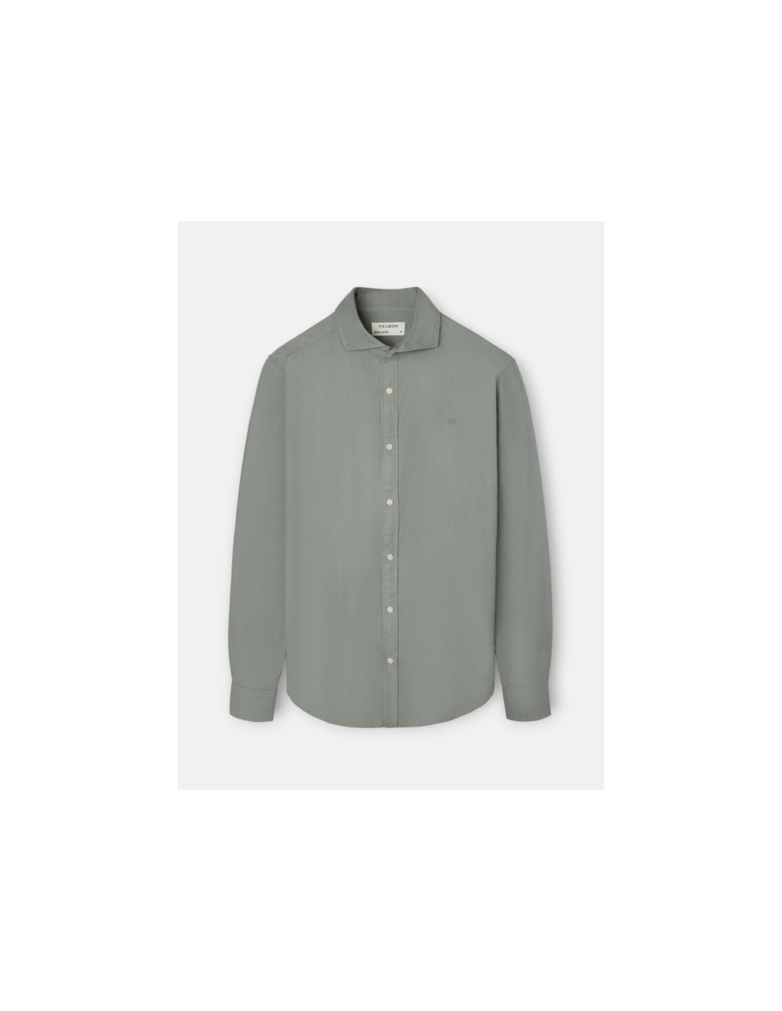 SilbonCamisa sport estructura con tejido en espiga de color verde claro confeccionada en 100% algodón, con corte Slim fit. Presenta cuello cutaway y manga larga de puño con botones. Cuenta con raquetas bordadas al tono en el torso.