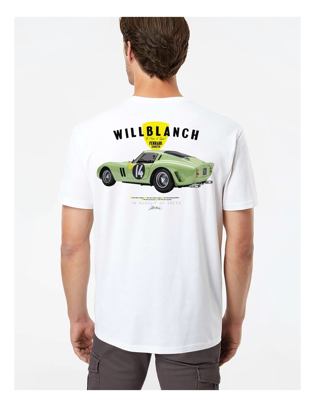El protagonista de esta camiseta es, sin duda, su impactante serigrafía delantera y trasera, obra del artista Will P.M., quien ha capturado con maestría la esencia del mítico Ferrari 250 GTO. La ilustración, ejecutada con un altísimo nivel de detalle, destaca por sus colores vivos y su composición dinámica, convirtiéndose en el centro de todas las miradas. Tanto en el frontal como en la parte posterior, la serigrafía resalta sin saturar, integrándose perfectamente en el conjunto y elevando la prenda a una categoría superior.