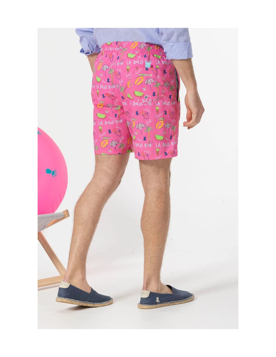 Su diseño destaca por un atractivo estampado de pulpos en toda la superficie, generando un divertido contraste que añade frescura y personalidad a tu estilo de playa o piscina. El tono rosa chicle del bañador aporta un efecto visual único y moderno, haciendo que destaques sin esfuerzo. La cintura ajustable con cordón asegura un ajuste personalizado y cómodo, permitiéndote moverte libremente en el agua o en actividades al aire libre. Los herretes del cordón en contraste suman un detalle adicional de calidad y estilo, que además facilita su ajuste y añade un toque distintivo. Para asegurar la máxima comodidad durante su uso, este bañador cuenta con un suave forro interior de red confeccionado en 100% poliéster, ideal para proporcionar soporte y transpirabilidad, evitando así incomodidades. El tejido ligero y transpirable hace que sea cómodo tanto dentro como fuera del agua, proporcionando una sensación agradable durante todo el día. El diseño práctico del bañador Allover elPulpo incluye bolsillos laterales para guardar pequeños objetos de forma segura, y un bolsillo trasero con cierre de velcro, perfecto para objetos que requieran mayor seguridad. Esta funcionalidad adicional hace que el bañador sea ideal no solo para nadar, sino también para paseos casuales junto al mar o actividades al aire libre. En la parte inferior del bañador encontrarás un parche engomado, un sutil elemento decorativo que refleja la calidad y autenticidad de la marca elPulpo. Este detalle refuerza la identidad de la prenda y añade un toque sofisticado, alineado con las últimas tendencias en moda masculina para playa y piscina. Ya sea para relajarte en vacaciones, disfrutar de una escapada de fin de semana, o simplemente para pasar el día junto a la piscina, este bañador será una elección acertada por su versatilidad, estilo y resistencia. Su combinación de elementos técnicos y detalles estéticos lo convierten en una prenda imprescindible para hombres modernos y activos que valoran tanto la funcionalidad como la moda.- -20%