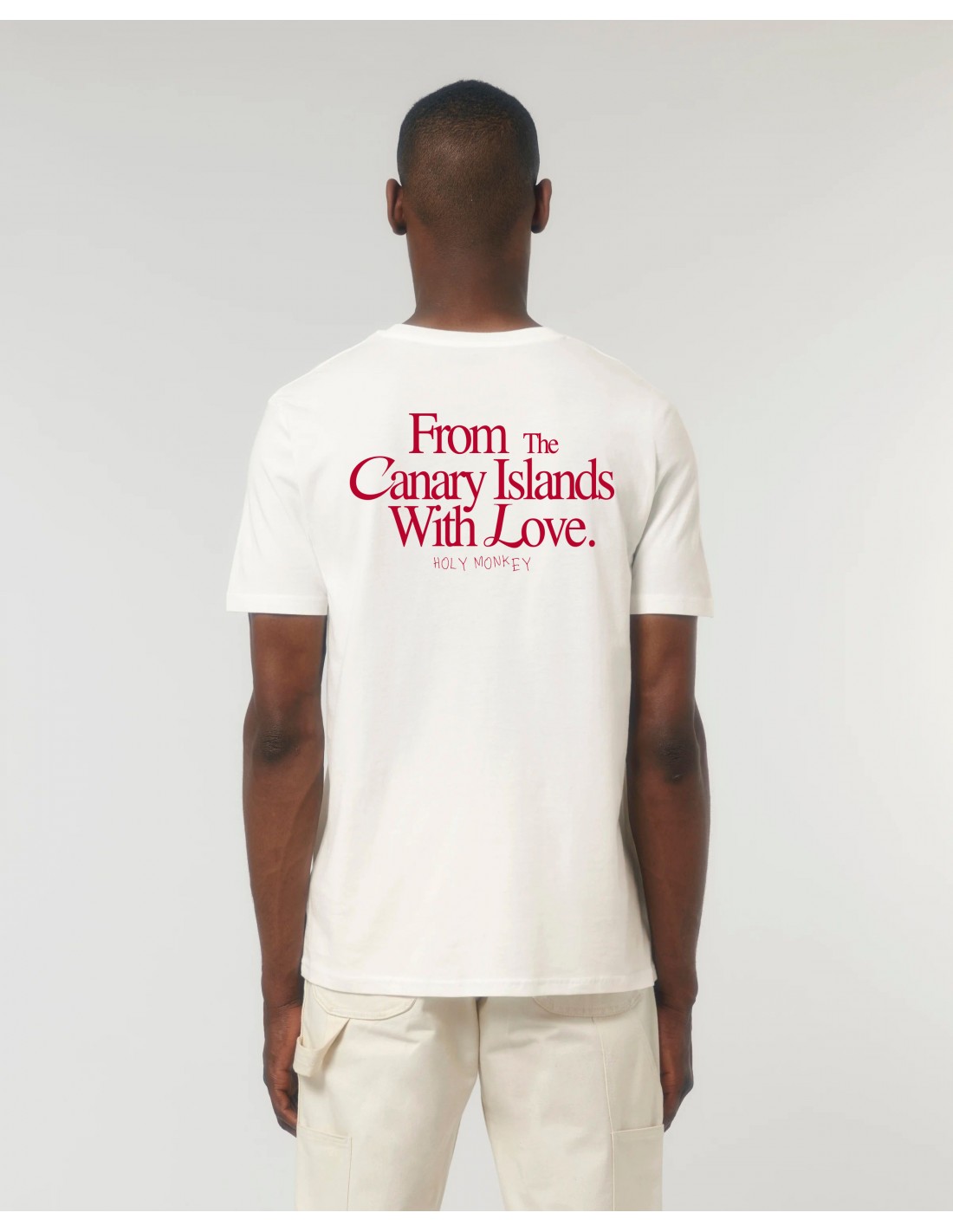 Confeccionada con tejidos suaves y de alta calidad, esta camiseta te proporcionará una sensación agradable al tacto, manteniéndote cómodo durante todo el día bajo el clima cálido de este enclave. El estampado "HOLY LOVE" en tonos rosas añade un toque de dulzura y energía positiva a tu vestuario, transmitiendo un mensaje de amor y buenas vibraciones allá donde vayas. El distintivo estilo de Holy Monkey se refleja en el diseño, creando una prenda única y llena de personalidad.