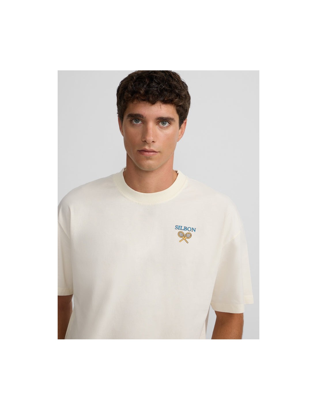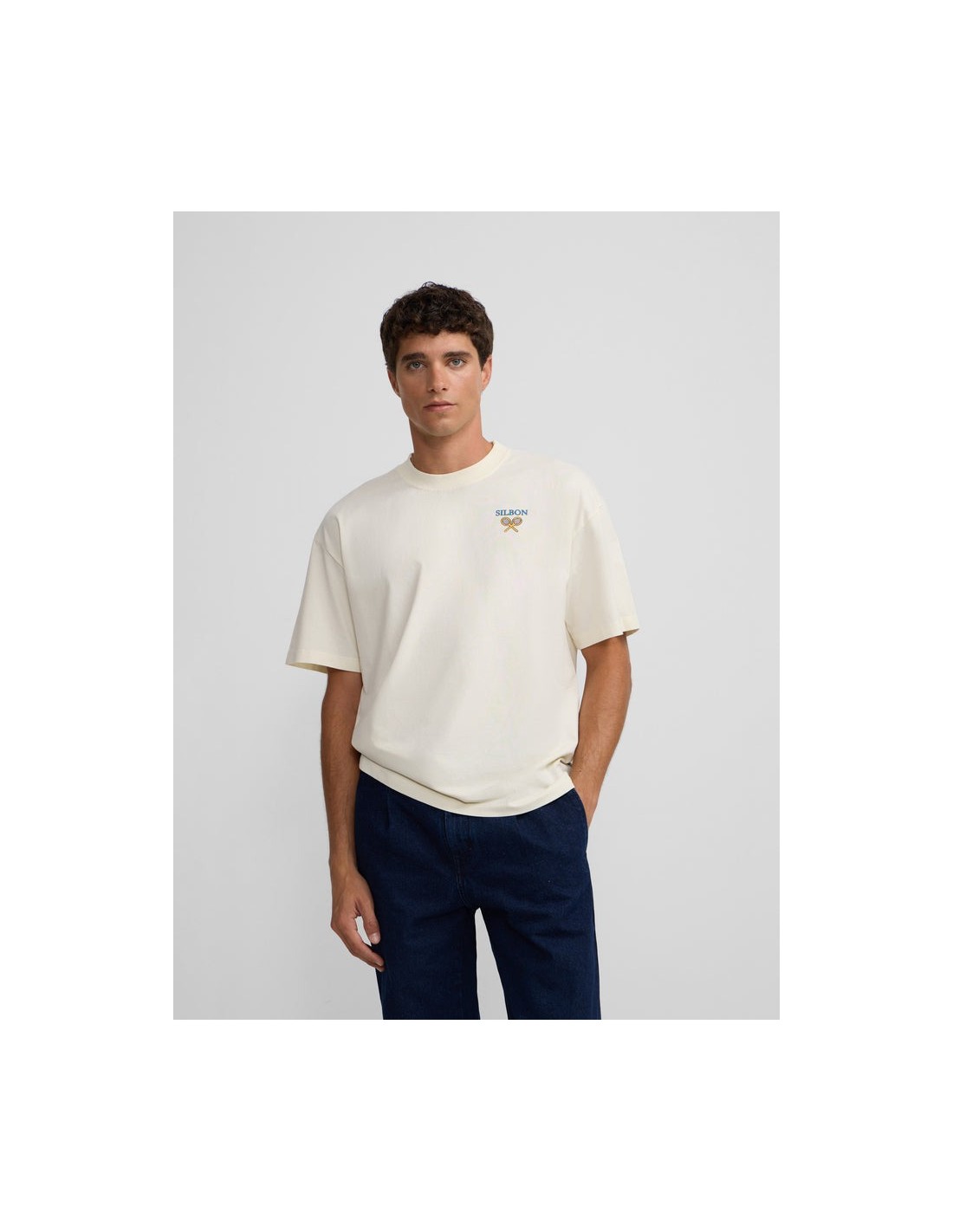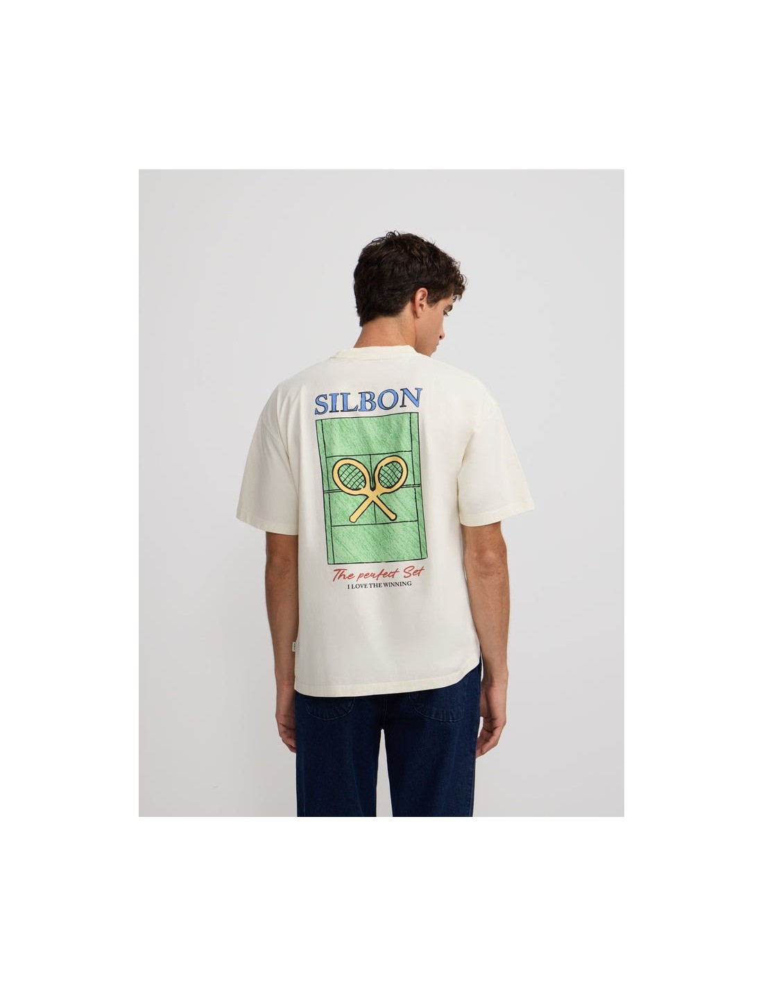 SilbonCamiseta Perfect Set color crema confeccionada en 100% algodón de corte Special fit. Presenta cuello redondo y manga corta. Cuenta con print de dibujo en la espalda y en el torso. Fabricada en Portugal.