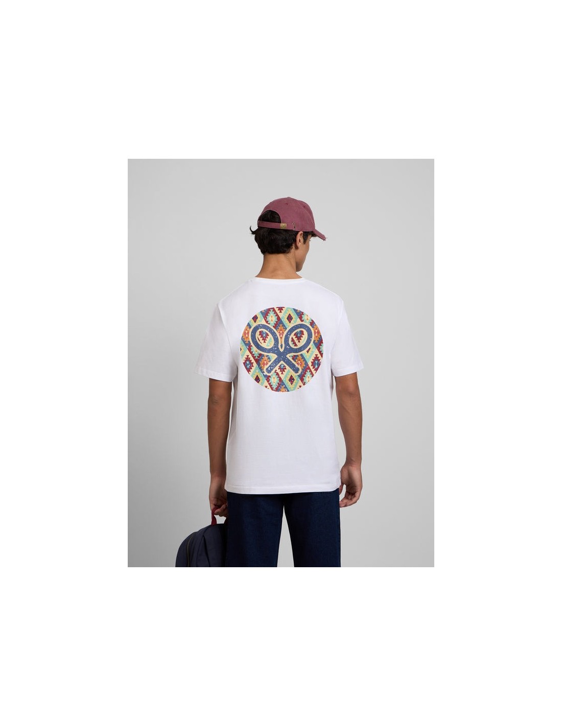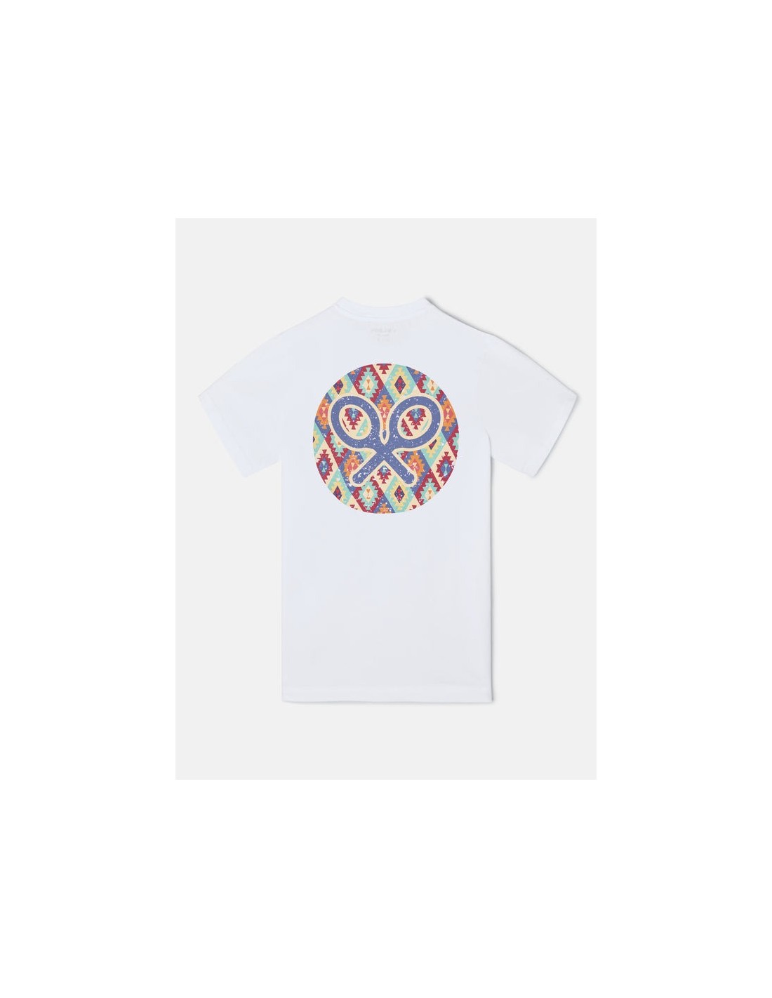 SilbonCamiseta blanca de manga corta confeccionada en 100% algodón de corte Regular fit. Presenta detalle print de círculo con estampado étnico multicolor con raquetas en la espalda. Cuenta con cuello redondo y pequeño print de logo de raquetas a contraste en el torso.