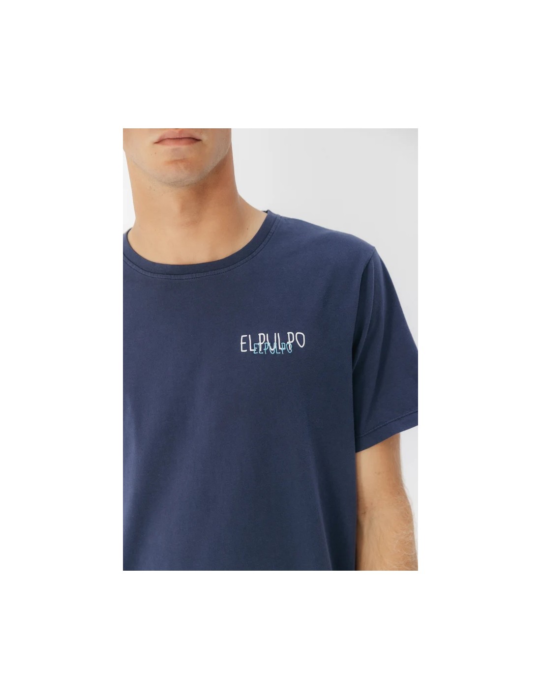 Camiseta manga corta confeccionada en 100% algodón orgánico en color azul marino. Logo en pecho y y espalda. Regular fit y cuello redondo. Detalle cruces bordadas a contraste en la manga.