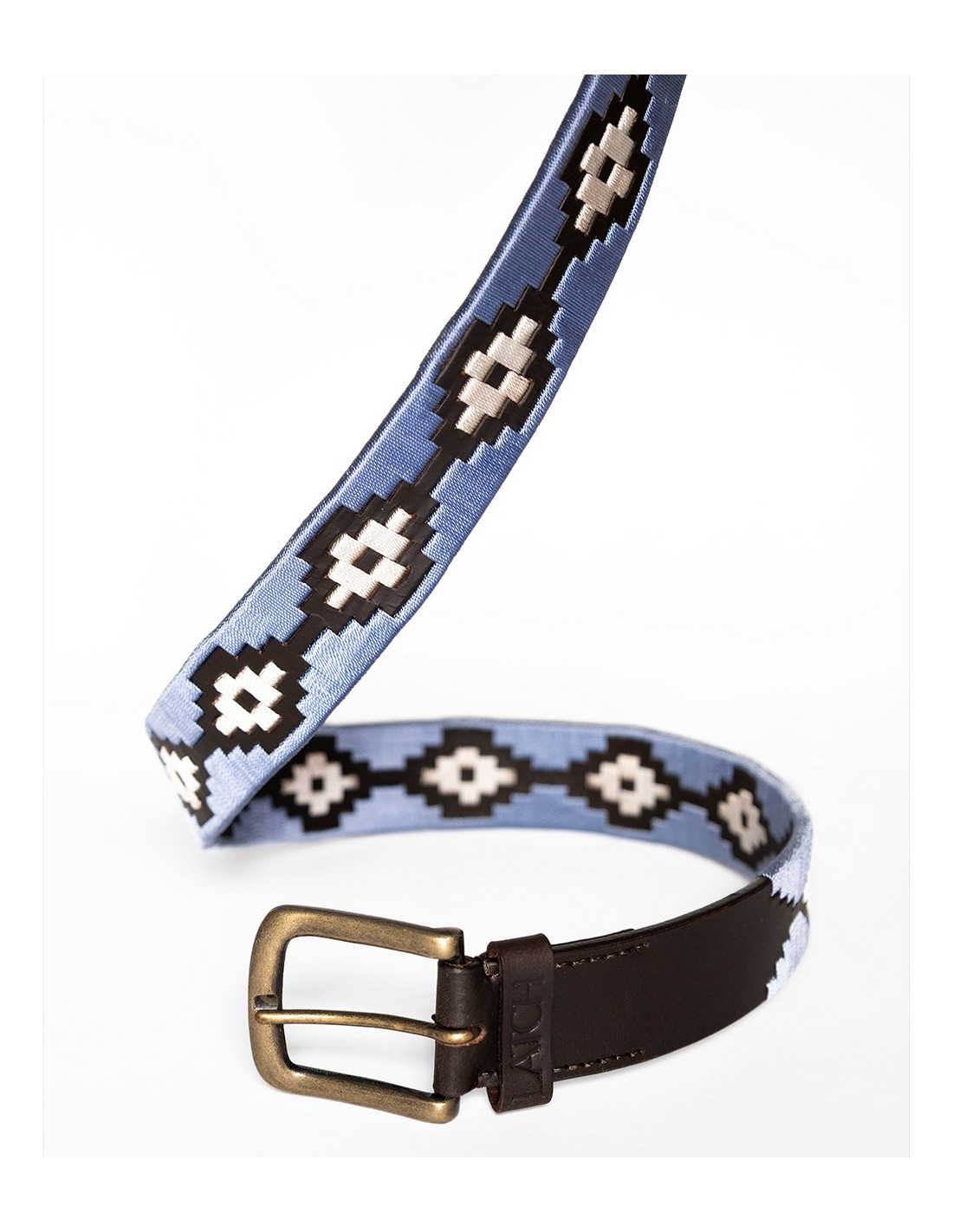 DESCRIPCIÓN: Cinturón fabricado utilizando piel de serraje vacuno (también conocida como piel vuelta) de máxima calidad en combinación con hilos de piel de color en forma de trenzado cosido a mano. Contiene una hebilla metálica en tono plateado mate, la misma no pierde color con el paso del tiempo y con logo troquelado en hendiduras y timbrado serigrafiado. La combinación del cinturón es la siguiente: Azul Celeste y Blanco. Gracias a sus originales combinaciones y materiales, hace un cinturón de cuero ideal para todos aquellos que buscan un cinturón versátil, atemporal y funcional. Combina perfectamente con cualquier tipo de pantalón y es ideal incluso para ocasiones más elegantes.