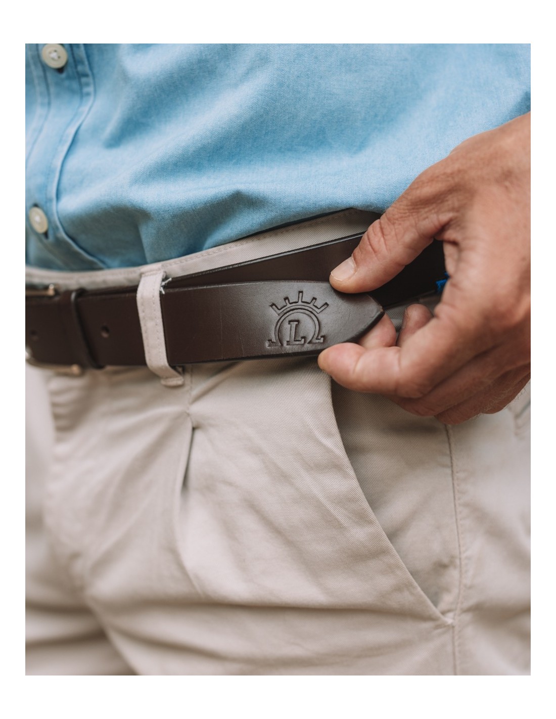 CARACTERÍSTICAS: Ancho: 4,5 cm COMPOSICIÓN: Confeccionado en 100% piel de vacuno natural auténtica Cierre con hebilla metálica en tono plet Detalle de logo timbrado y serigrafiado En LATCH empleamos pieles de la mejor calidad para fabricar artesanalmente cada uno de nuestros productos. Ten en cuenta que las pieles son materiales completamente naturales, y en ocasiones se pueden apreciar pequeñas imperfecciones propias del cuero.