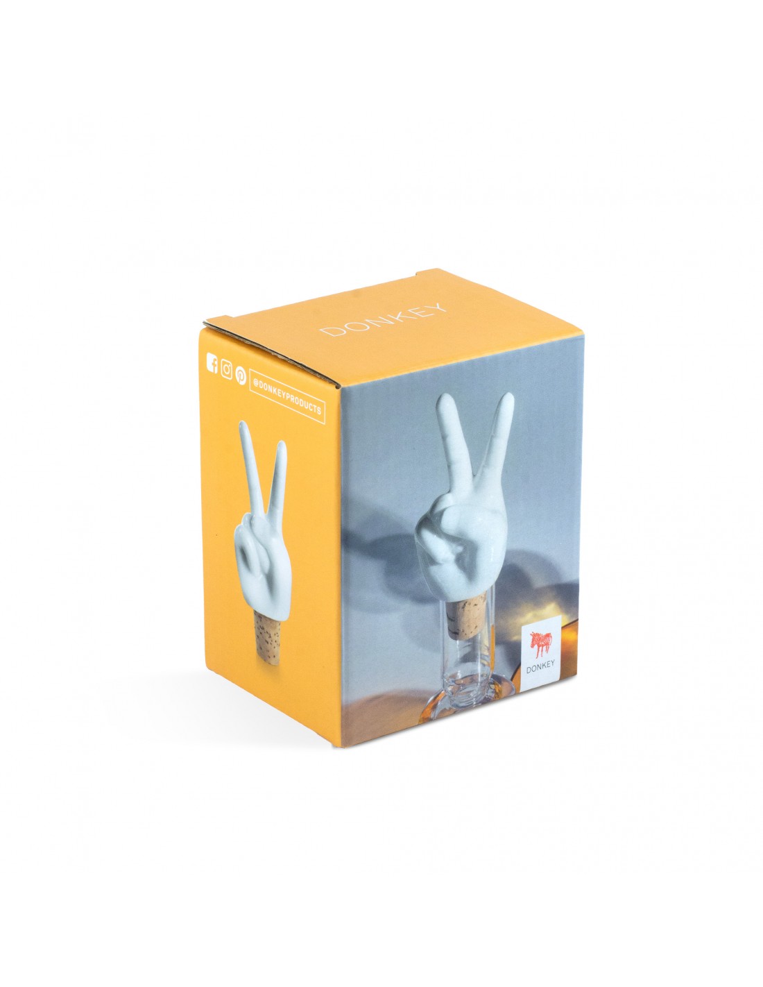 Fabricado con materiales de alta calidad, combina la elegancia de la porcelana blanca con la practicidad del corcho natural, logrando un cierre hermético que ayuda a conservar el vino en óptimas condiciones una vez abierta la botella. Su diseño, con forma de mano haciendo el gesto de la paz, no solo es llamativo y divertido, sino que también transmite un mensaje positivo, convirtiéndolo en un regalo ideal o en un complemento perfecto para cenas, celebraciones o momentos especiales.