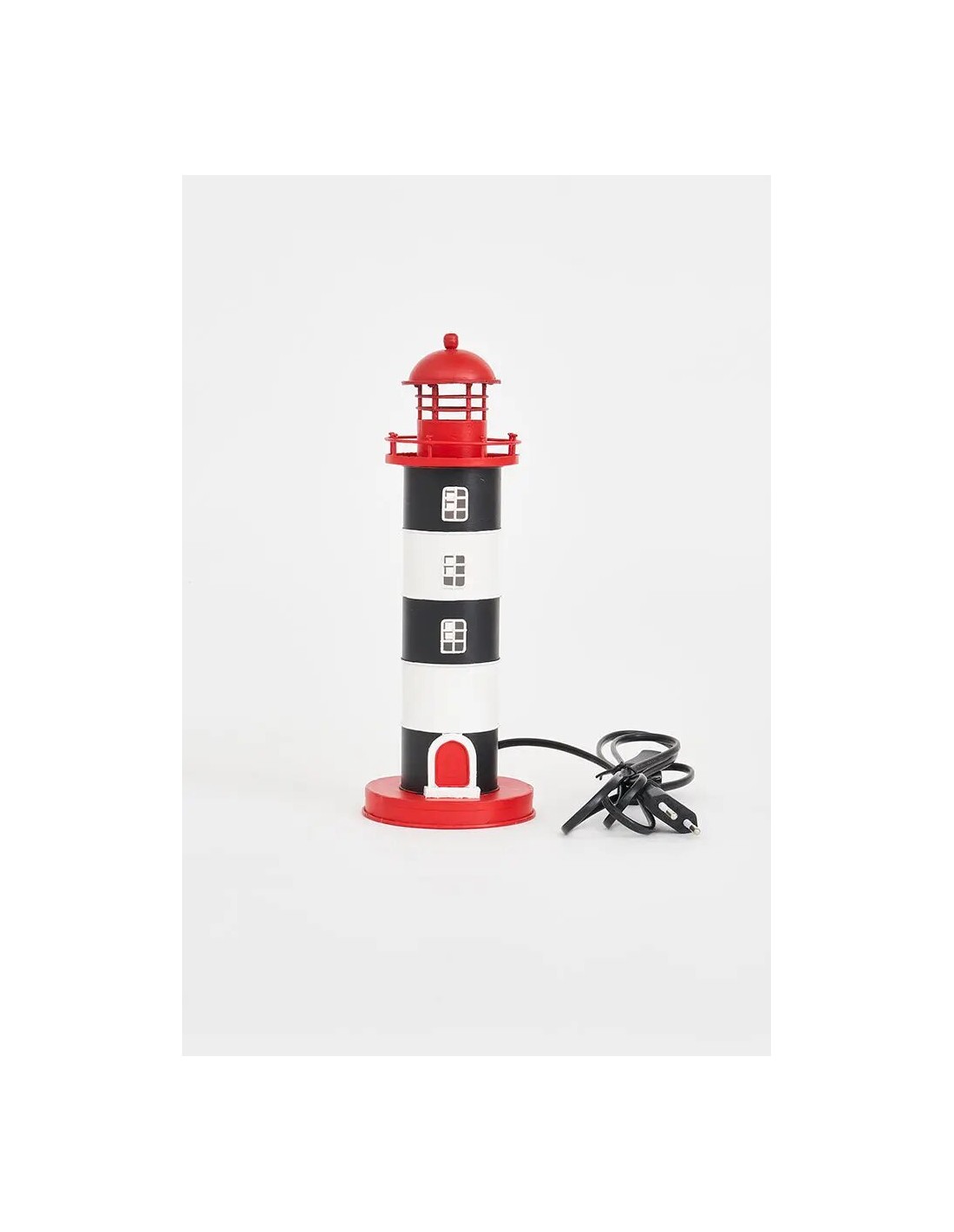 Este faro de metal de 32,5 cm de alto es una pieza decorativa e iluminadora que aporta un toque náutico sofisticado a cualquier espacio del hogar. Con un diseño estilizado y pintado en tonos blanco, negro y rojo, este faro evoca el estilo clásico de las construcciones marítimas, combinando funcionalidad y estética con un encanto costero único.