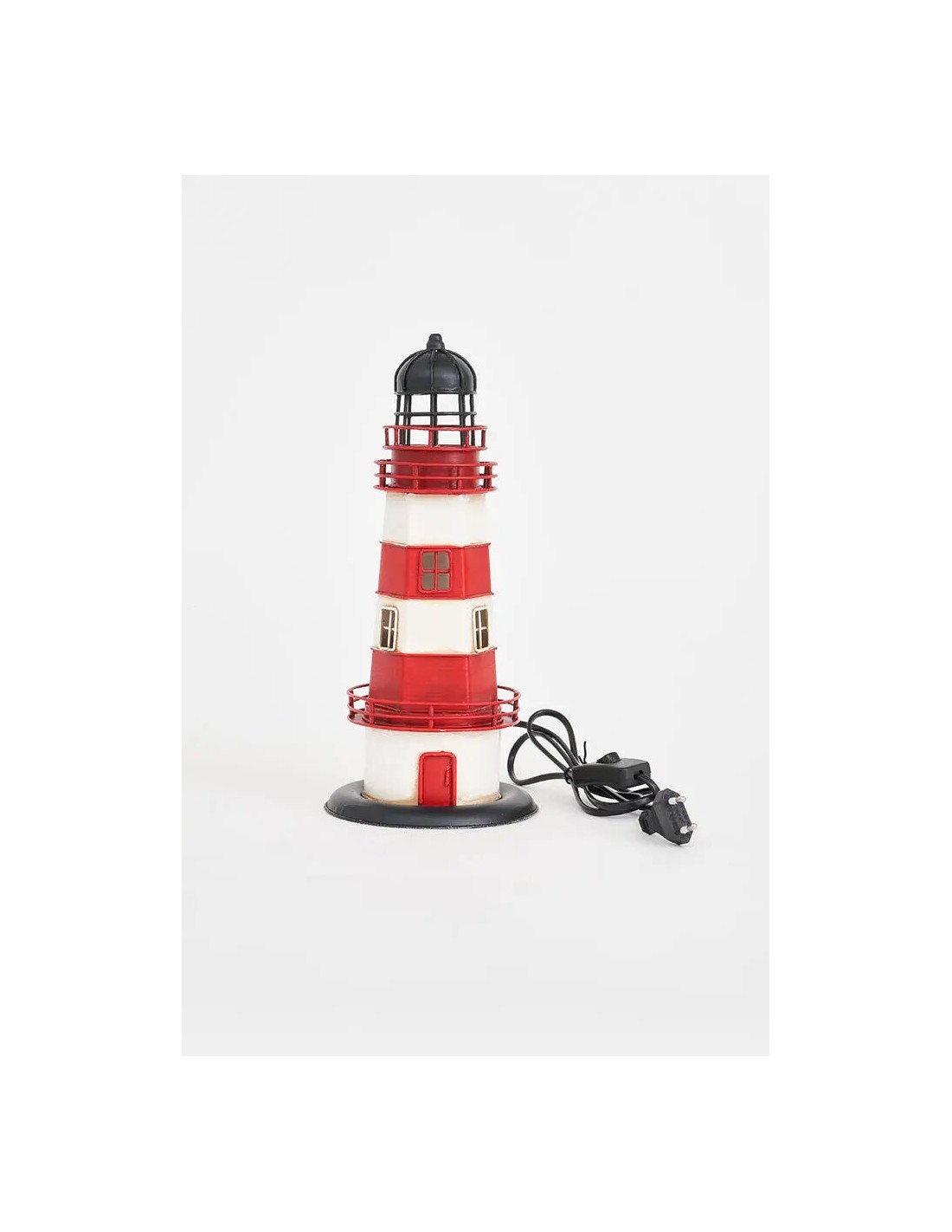 BatelaEste faro de metal de 32,5 cm de alto es una pieza decorativa e iluminadora que aporta un toque náutico sofisticado a cualquier espacio del hogar. Con un diseño estilizado y pintado en tonos blanco, negro y rojo, este faro evoca el estilo clásico de las construcciones marítimas, combinando funcionalidad y estética con un encanto costero único.