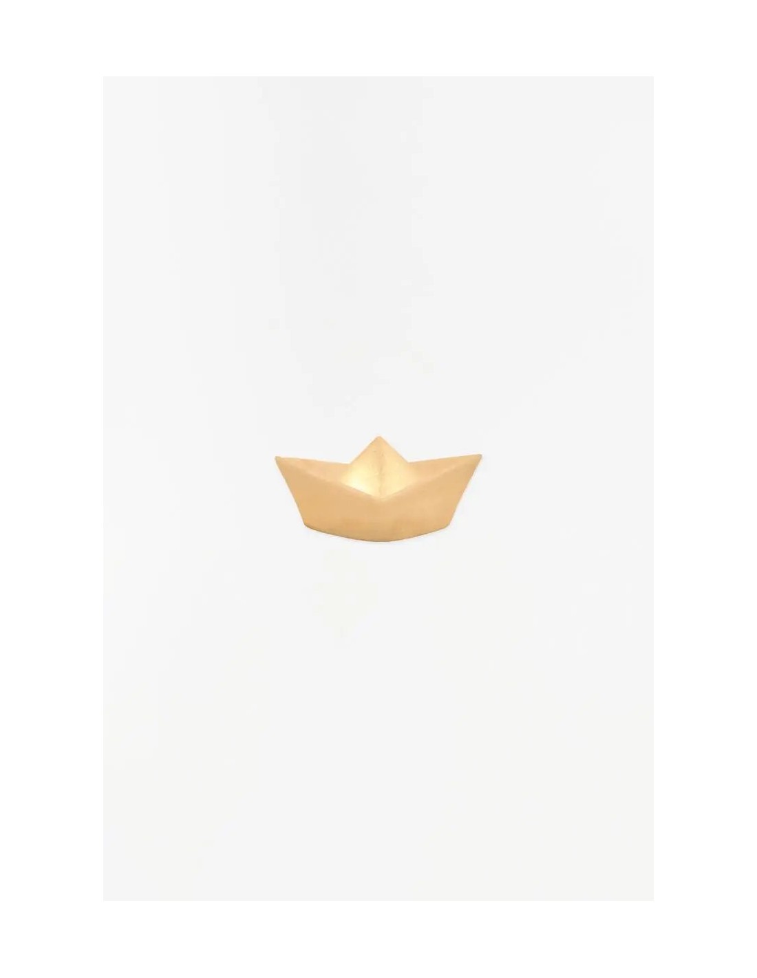 Con unas dimensiones compactas (15,5 cm de largo y 8 cm de alto), esta lámpara se adapta con facilidad a estanterías, mesillas de noche, escritorios o cualquier superficie donde se quiera añadir un toque acogedor. Su tamaño la convierte en una opción ideal para crear atmósferas íntimas y decorativas sin ocupar demasiado espacio. Fabricada en resina de alta calidad, esta lámpara destaca por su durabilidad y por la suavidad de su acabado, que resalta la forma y los pliegues característicos del diseño original de un barco de papel. La luz que emite es cálida y envolvente, perfecta para acompañar momentos de lectura, descanso o simplemente para ambientar con una iluminación tenue y acogedora. Funciona a pilas (no incluidas), lo que la hace aún más práctica y versátil, ya que puede colocarse en cualquier lugar sin depender de enchufes o cables visibles. Esta autonomía la convierte en una excelente opción tanto para uso doméstico como para regalar en ocasiones especiales. Su diseño encantador la hace especialmente atractiva para habitaciones infantiles, zonas de juegos o como detalle decorativo en ambientes creativos. También puede formar parte de una decoración más general con estilo náutico o nórdico, aportando una nota de dulzura y originalidad. Esta lámpara de barco de papel es un regalo ideal para quienes valoran los objetos decorativos que combinan estética, funcionalidad y un toque emocional. Su diseño simbólico evoca recuerdos de la infancia y momentos tranquilos, convirtiéndola en una pieza decorativa llena de significado. Incorpora esta lámpara a tu hogar y disfruta de un ambiente más cálido, acogedor y lleno de personalidad, gracias a su luz tenue y su encantador diseño en forma de barquito de papel.Lámpara barco de papel Pequeño L: 15,5 cm - H: 8 cm