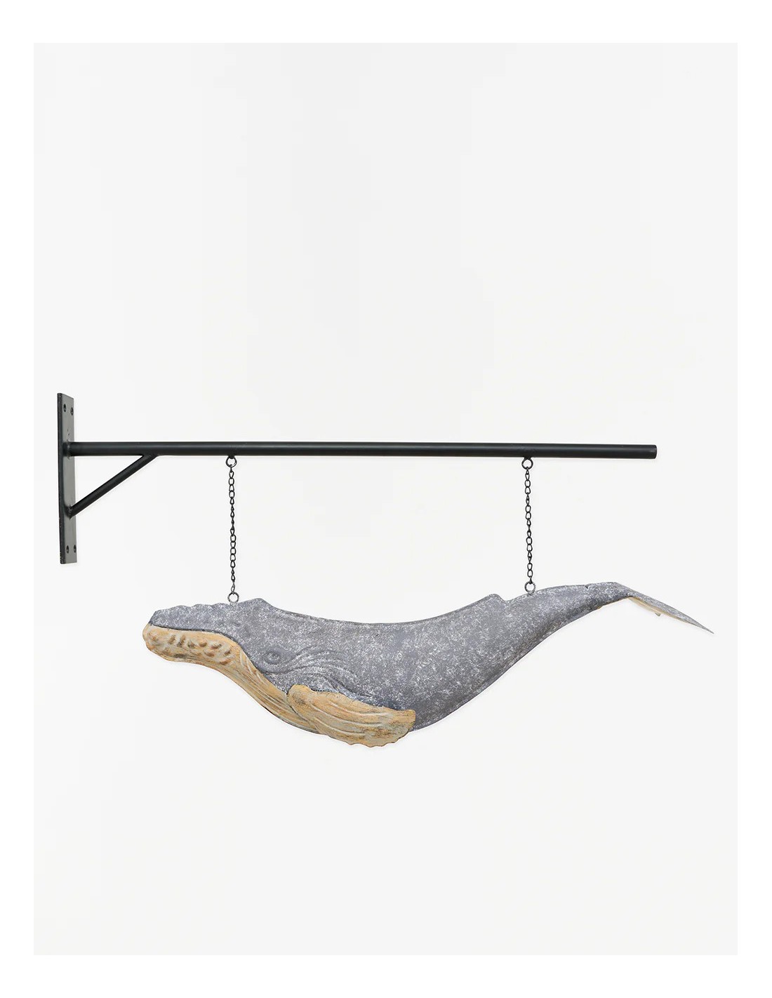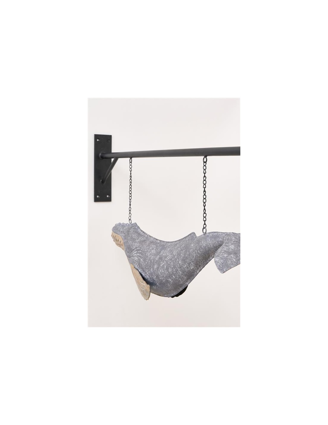 Con dimensiones amplias y equilibradas (61 cm de largo, 19,5 cm de ancho y 21 cm de alto), esta ballena decorativa tiene la presencia necesaria para convertirse en un elemento visualmente llamativo y elegante en salones, dormitorios o terrazas cubiertas. Sus líneas limpias y modernas permiten integrarla fácilmente en diferentes estilos decorativos, desde ambientes minimalistas y contemporáneos hasta decoraciones más tradicionales o inspiradas en el océano. La estructura metálica de esta figura garantiza resistencia y durabilidad, manteniendo su belleza y atractivo visual intactos con el paso del tiempo. La calidad del material facilita su mantenimiento y permite conservar el brillo original y la apariencia impecable sin complicaciones. Gracias a los soportes integrados, esta ballena se puede colgar fácilmente en la pared, ofreciendo una opción decorativa versátil que ahorra espacio y aporta una dimensión adicional al ambiente. Su capacidad para combinar funcionalidad con estética refinada la convierte en una elección ideal para quienes buscan elementos decorativos que reflejen elegancia y originalidad. Este artículo decorativo también constituye un excelente regalo para personas que sienten pasión por el mar, las temáticas náuticas o simplemente valoran piezas únicas con carácter propio. Ideal para obsequiar en ocasiones especiales como cumpleaños, aniversarios o celebraciones importantes, esta ballena decorativa será siempre apreciada por su diseño exclusivo y su alta calidad. Incorporar esta magnífica ballena metálica a tu decoración añadirá un toque contemporáneo, elegante y marítimo a cualquier espacio de tu hogar, oficina o negocio. Ya sea colgada en la pared o colocada sobre una superficie, esta figura decorativa atraerá la atención y se convertirá en un punto focal destacado que reflejará tu gusto por elementos exclusivos y cuidadosamente elaborados. Disfruta de esta pieza decorativa excepcional y deja que su presencia única transforme tu ambiente en un lugar con estilo, personalidad y un marcado encanto marítimo.Ballena de metal con soporte para colgar