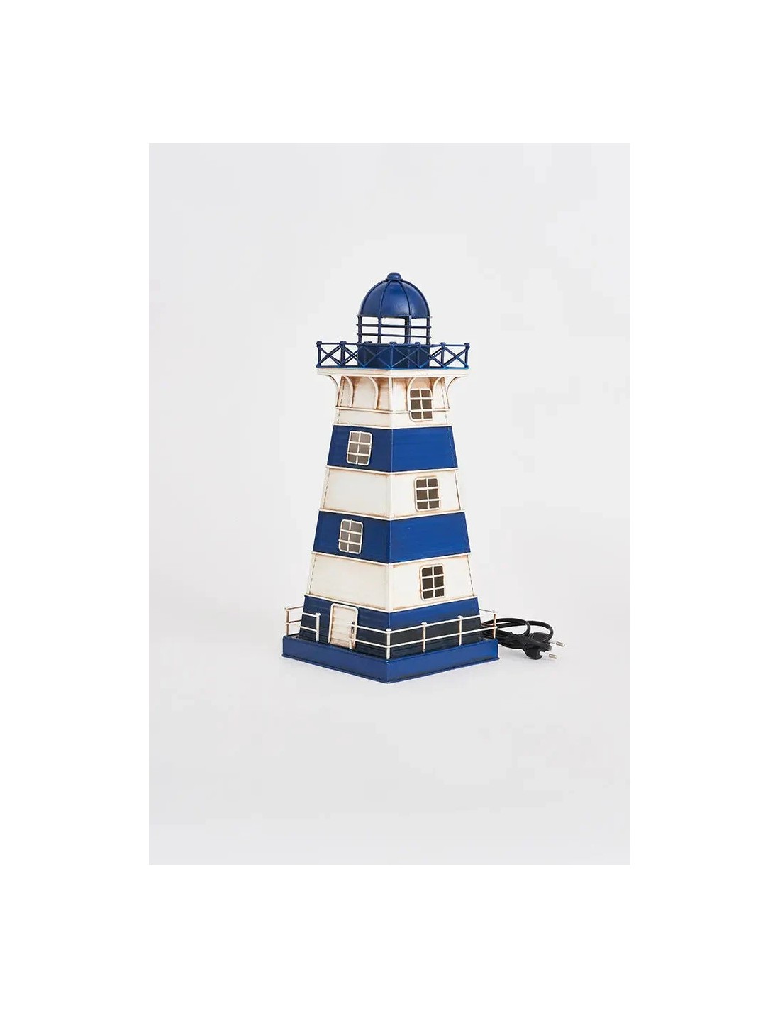BatelaFaro eléctrico en metal: Iluminación marina en azul y blanco, ¡40,5 cm de estilo!