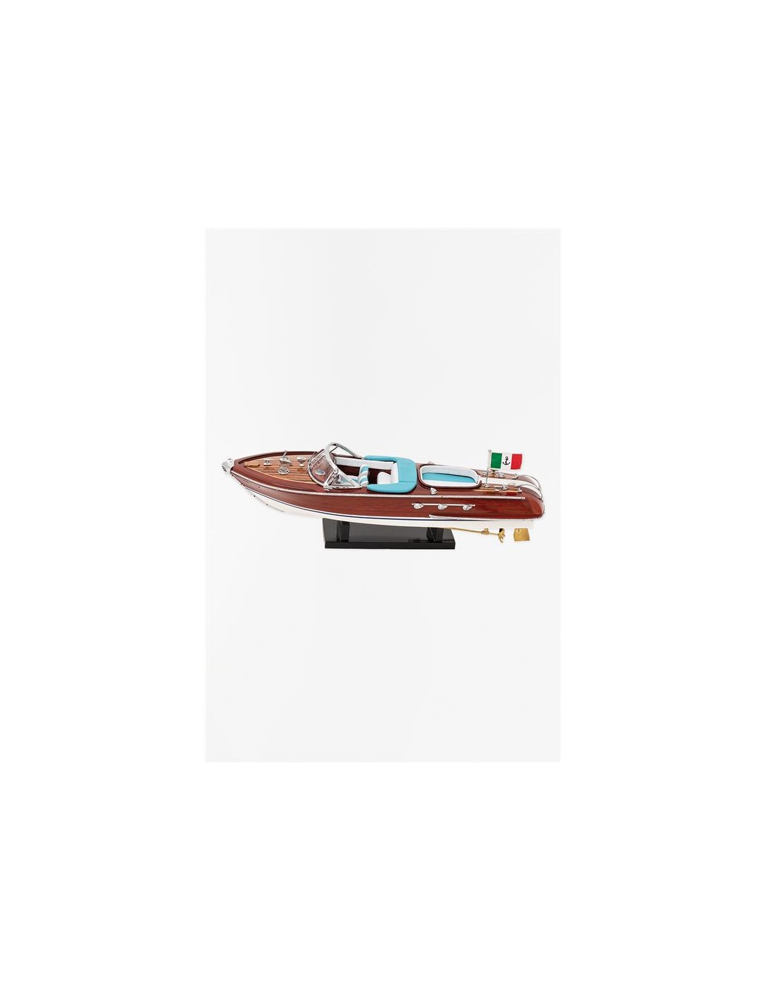 Réplica lancha motora de madera con asientos azules.. Materiales de alta calidad y un objeto marinero único para decorar tu hogar o negocio.