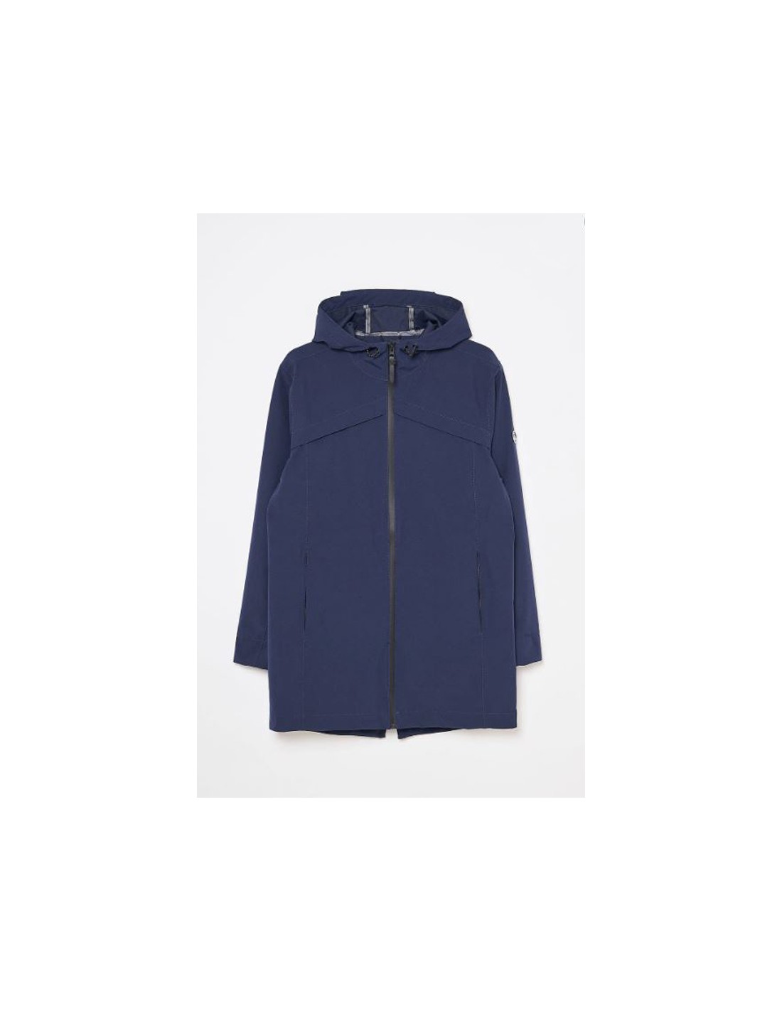 Para añadir más versatilidad al diseño, el chubasquero también presenta un canesú delantero con pliegue y un bolsillo oculto con cremallera, ideal para llevar pequeños objetos personales de forma discreta. La apertura trasera ofrece mayor libertad de movimiento, mientras que los ojales en las sisas garantizan una ventilación óptima para evitar la acumulación de calor.
