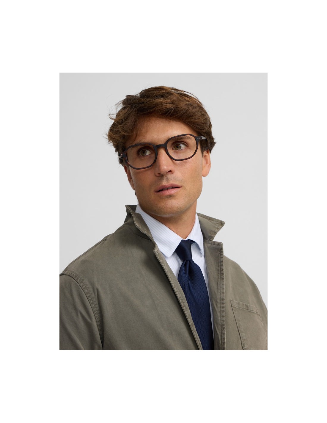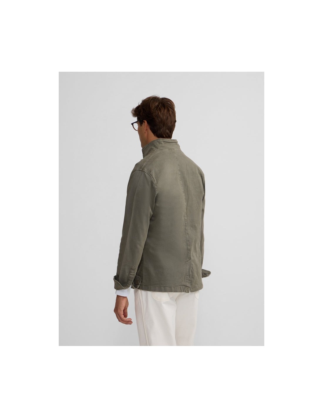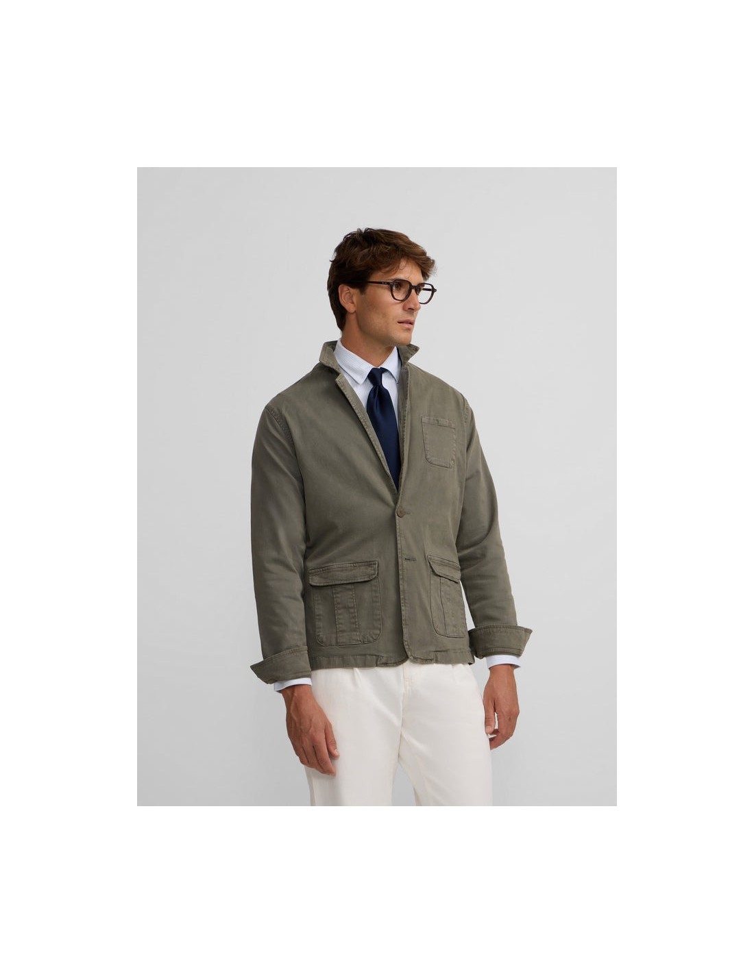 SilbonSemiblazer casual gris confeccionada en mezcla de algodón BCI. Presenta cierre con botones personalizados, bolsillos delanteros tipo parche, bolsillo insertado en torso y manga larga de puño con botón. Cuenta con cuello con solapas de muesca. No contiene hombreras y no tiene forro.