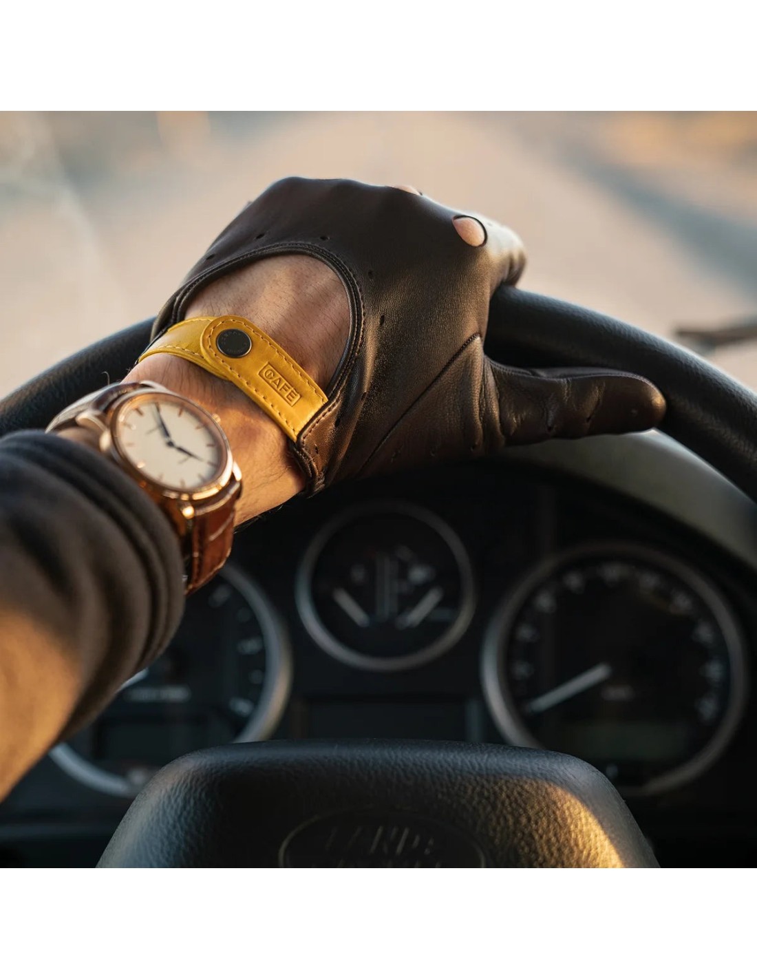 Guantes de conducir burdeos «Triton», nuestro icono. Inspirados en las carreras clásicas, estos guantes de conducir son resistentes, y su piel, increíblemente agradable al tacto. Están realizados de manera artesanal con especial cuidado por los pequeños detalles. Su cierre Cobrax Original y su zona elástica en la zona de la muñeca, aportan seguridad y aumentan su confort. La piel perforada, nos permite una mayor transpiración. Sin duda, estos guantes de conducir harán las delicias de cualquier apasionado al mundo del motor.