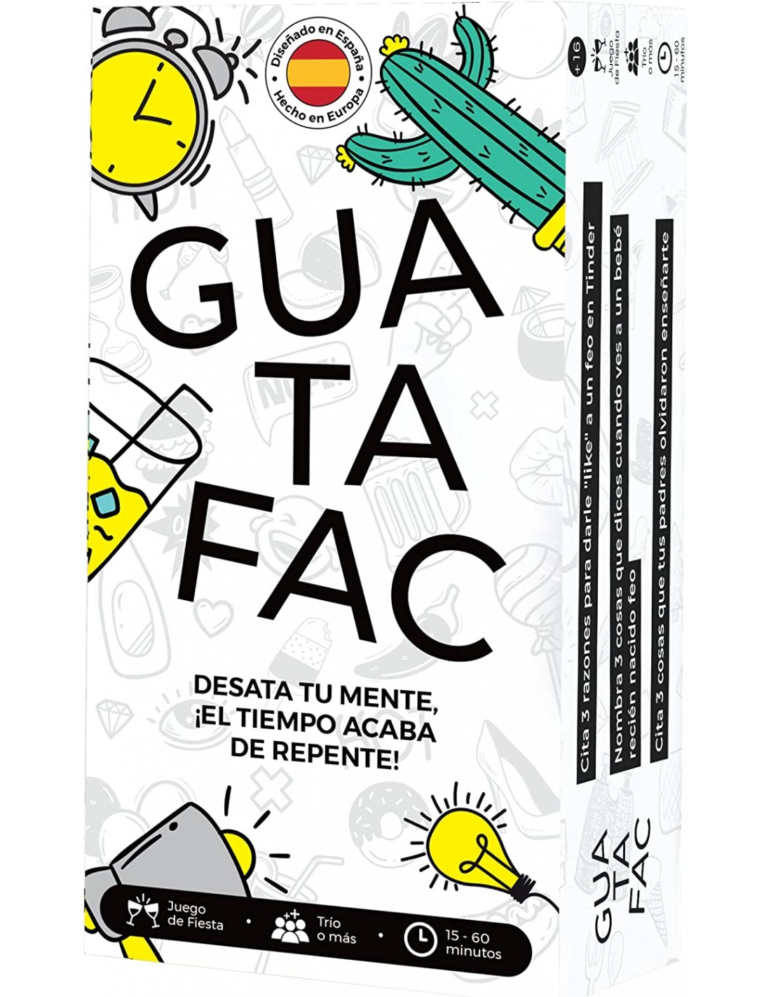 Ideal para grupos grandes: Si estás buscando un juego para disfrutar en grupo, GUATAFAC es perfecto. Es un juego diseñado para compartir risas en equipos o entre amigos, haciendo que cada jugador participe de manera activa y divertida. No importa cuántas personas haya en la mesa, ¡todos podrán ser parte de la diversión!