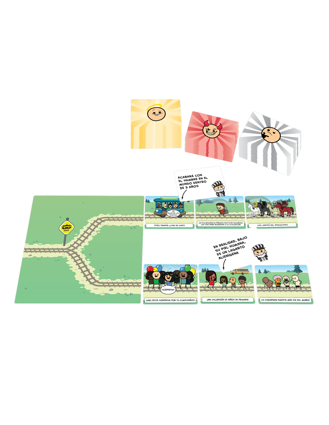 Tranvía Mortal – El juego de mesa más macabramente divertido para poner a prueba tu moral Tranvía Mortal es un juego de mesa original, irreverente y absolutamente adictivo que pone a prueba tu ética, tu sentido del humor... y tu capacidad para tomar decisiones terribles. Inspirado en el famoso experimento filosófico del "problema del tranvía", este juego convierte un dilema moral clásico en una experiencia hilarante y llena de giros inesperados, ideal para animar cualquier reunión entre amigos o familiares. La premisa es simple pero ingeniosa: un jugador toma el rol de un conductor de tranvía sin frenos, enfrentado a una decisión imposible. Debe elegir entre dos vías, ambas repletas de personajes —algunos entrañables, otros despreciables—, y solo puede salvar a los que están en una de ellas. Mientras tanto, los demás jugadores se dividen en dos equipos que compiten por salvar a los personajes de su vía, utilizando todo tipo de argumentos, manipulaciones y estrategias para convencer al conductor de que la otra vía merece ser arrollada. Con un total de 500 cartas, Tranvía Mortal garantiza una rejugabilidad infinita. Cada partida es diferente, ya que las combinaciones posibles de personajes, escenarios y modificadores crean situaciones cada vez más absurdas, graciosas o inquietantes. Puedes encontrarte eligiendo entre atropellar a un gatito dormido o a un villano intergaláctico, mientras tus amigos intentan influir en tu decisión añadiendo cartas como “Este personaje está a punto de descubrir la cura del cáncer” o “Este otro acaba de quemar tu coche”. Además de ser un excelente juego de deducción y persuasión, Tranvía Mortal se destaca por su diseño visual atractivo y su humor negro sin tapujos. Está recomendado para adultos y adolescentes con ganas de pasar un buen rato riéndose de los dilemas éticos más extremos, sin necesidad de tomarse nada demasiado en serio. Es perfecto para veladas con amigos, noches de juegos o incluso como herramienta para debatir, entre risas, sobre los límites de la moralidad. El reglamento es claro, sencillo y fácil de aprender, lo que permite empezar a jugar casi de inmediato. En pocos minutos estarás tomando decisiones fatales y discutiendo apasionadamente por qué salvarías a un influencer vegano antes que a un científico loco. Si estás buscando un juego de mesa diferente, provocador y extremadamente divertido, Tranvía Mortal es una elección ideal. Su dinámica única lo convierte en el alma de cualquier encuentro social, fomentando el debate, la creatividad y, sobre todo, las carcajadas. Disponible en tiendas especializadas, este título es una apuesta segura para quienes disfrutan de los juegos con temática adulta, cargados de humor ácido y un enfoque ingenioso. ¿Te atreves a tomar los mandos del tranvía y decidir quién vive y quién no? ¡Solo hay una vía correcta… o no!