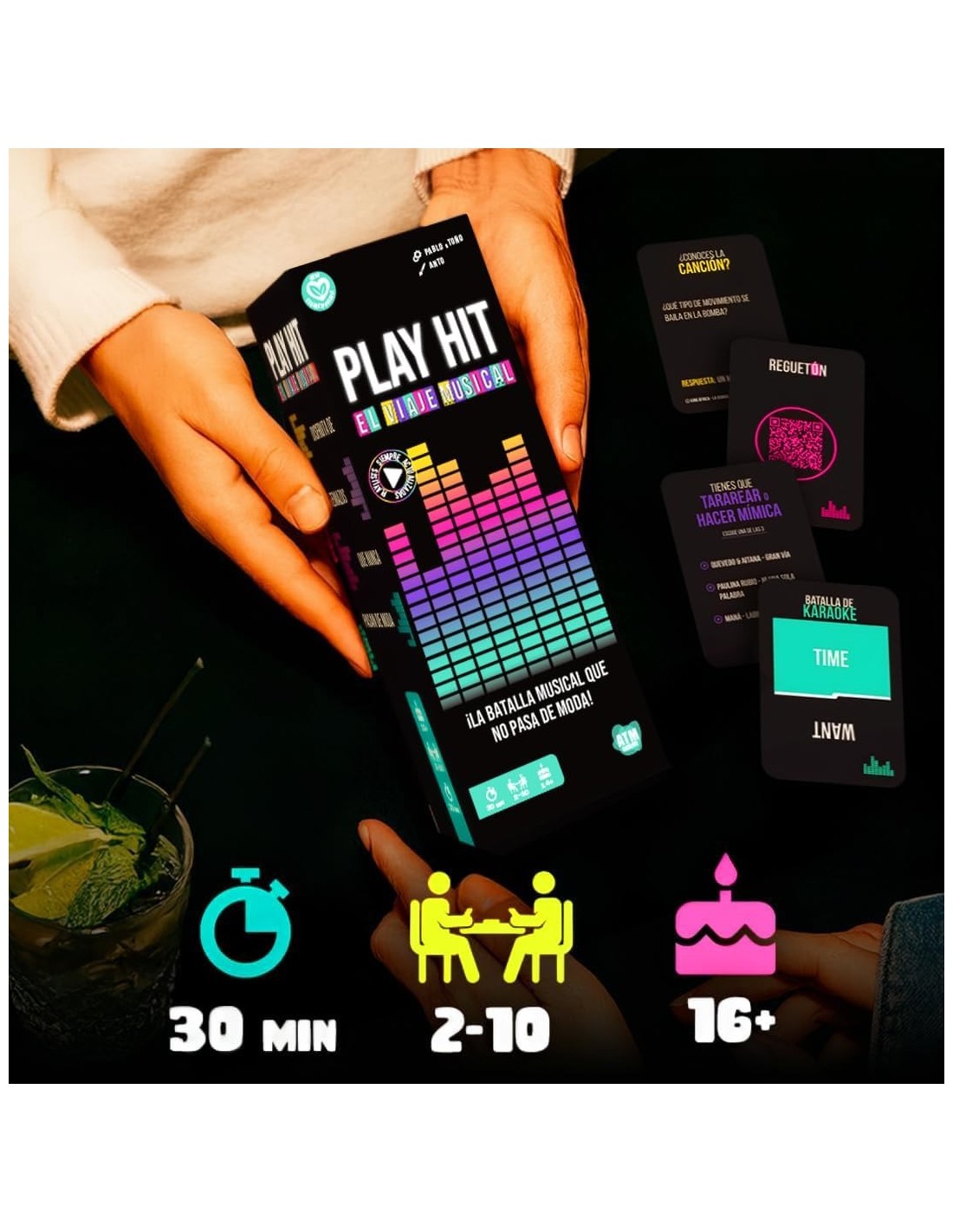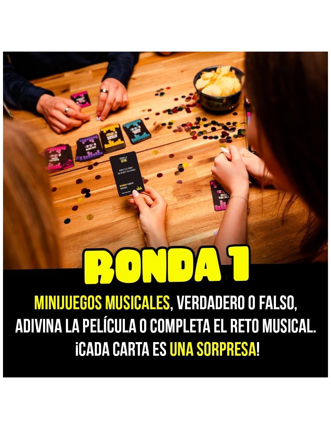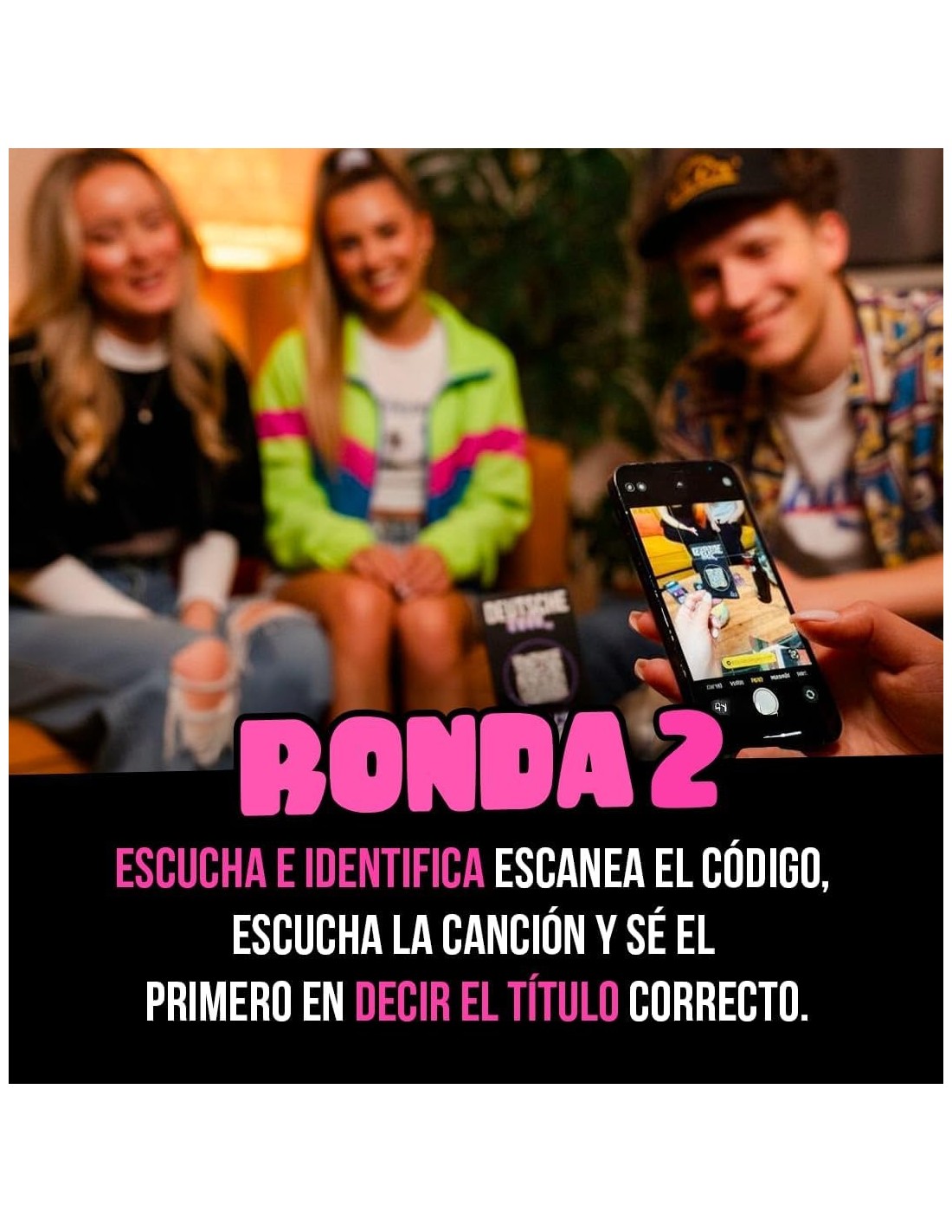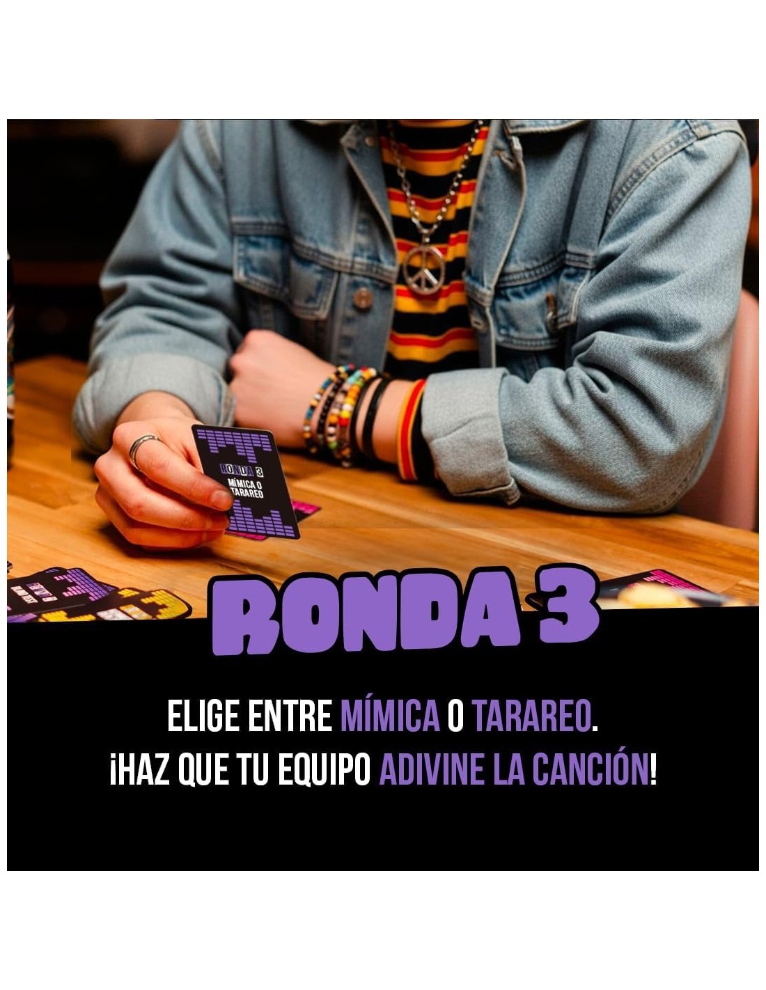 Diversión y trabajo en equipo El juego que pone a prueba tu cultura musical de los años 90, 2000 y más. ¿Te crees el rey de la pista? Embárcate en este viaje musical intergeneracional. íPon a prueba tus conocimientos musicales y reta a tus amigos en este nuevo juego de ambiente estilo karaoke! Cuidado, no solo habrá que cantar, las risas están aseguradas. íDemostrad rapidez, memoria y cooperación en este juego de estilo musical! Formad 2 equipos. Cada partida se desarrolla en 4 rondas. Ronda 1: Intentad responder el mayor número de preguntas en 1 minuto. Ronda 2: Ponte a prueba con estas preguntas de cultura y datos random sobre la industria musical. Ronda 3: Escoged una lista de reproducción y preparaos para identificar 5 canciones o artistas del género que habéis escogido. Ronda 4: Conviértete en un artista y haz mímica o tararea la canción que has escogido para que tu equipo la adivine.