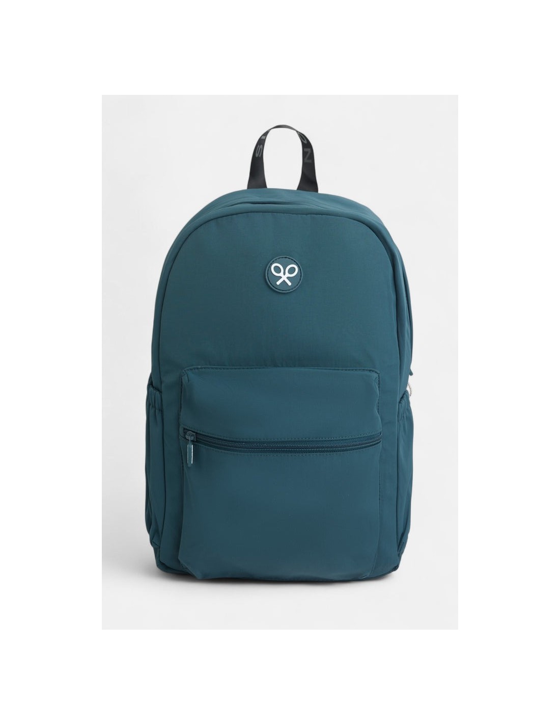 SilbonMochila técnica raquetas color verde. Presenta cierre de cremallera con tiradores personalizados. Contiene bolsillo frontal exterior, dos bolsillos laterales ideales para botellas de agua o cualquier tipo de complemento. Tiene detalle de logo de raqueta en blanco en el frontal.