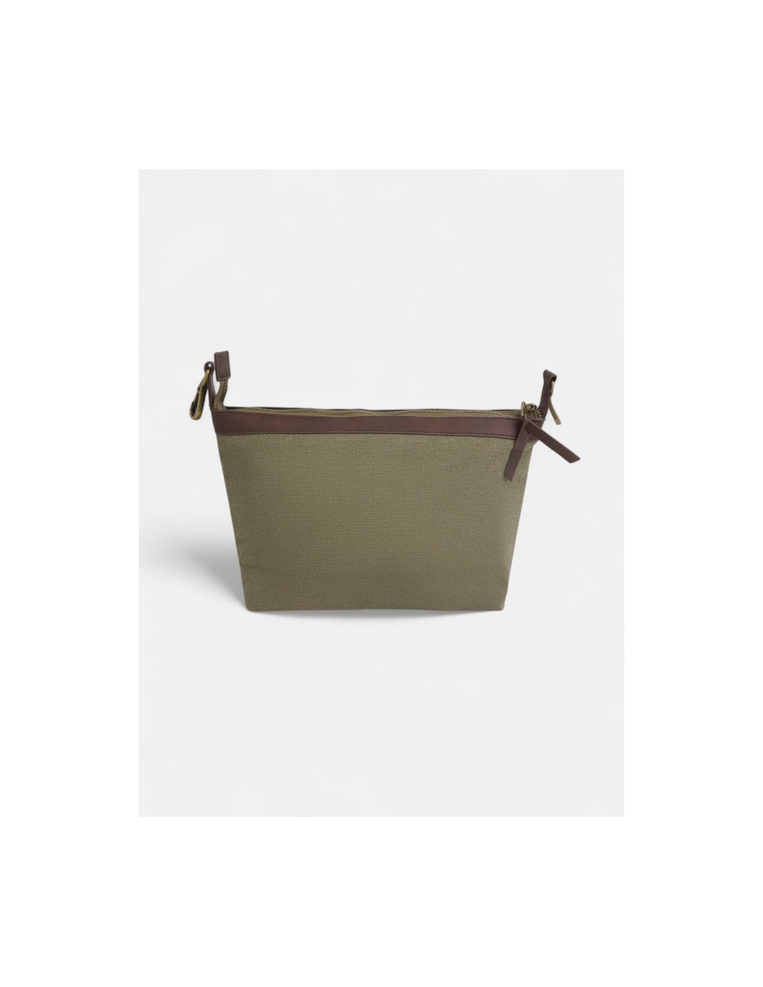Neceser sport color verde confeccionado en mezcla de algodón. Presenta cierre de cremallera con tiradores en color marrón. Cuenta con detalle de bordado de raquetas Silbon