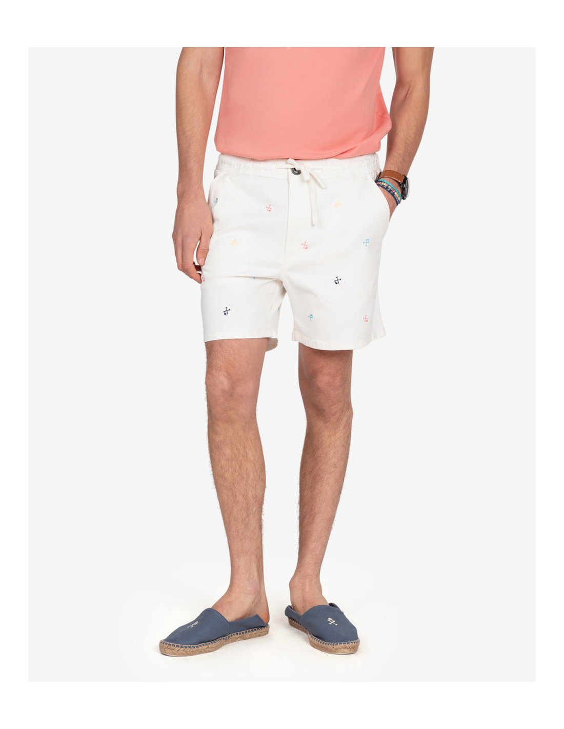 Los prácticos bolsillos delanteros inclinados ofrecen espacio para llevar contigo tus objetos personales de forma segura y accesible. Ya sea para un paseo por la costa, una tarde con amigos o simplemente para disfrutar de la tranquilidad del entorno isleño, la Bermuda Sunset Off White se adapta a cualquier plan.