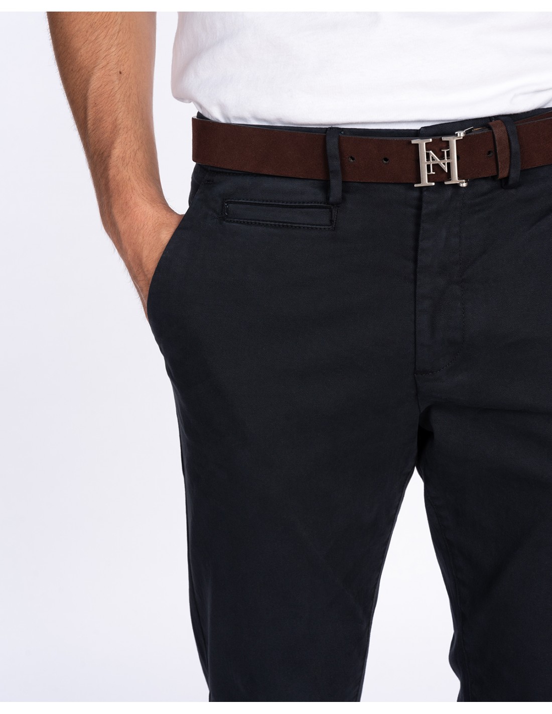 Este pantalón chino está diseñado para hombres que valoran tanto la estética como la funcionalidad. Su corte slim fit realza la silueta masculina de forma elegante, ofreciendo un ajuste moderno pero sin estrecheces incómodas. Se adapta con facilidad al movimiento diario, convirtiéndolo en una prenda ideal para el trabajo, para una reunión informal o incluso para una salida más sofisticada con solo cambiar el calzado o la camisa.