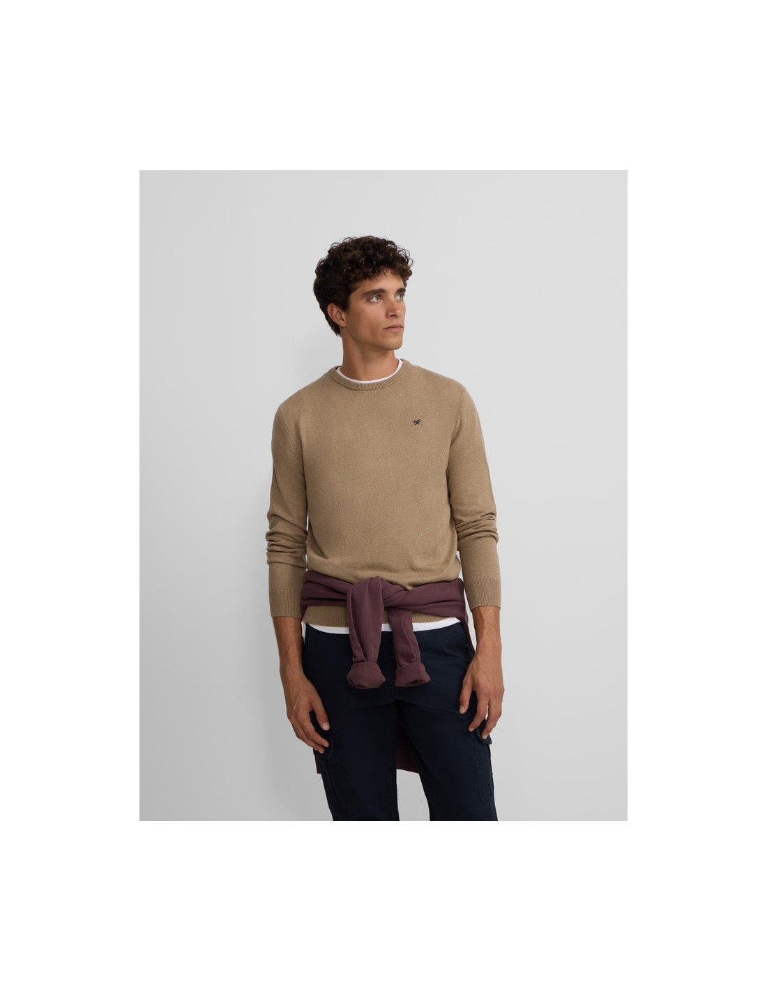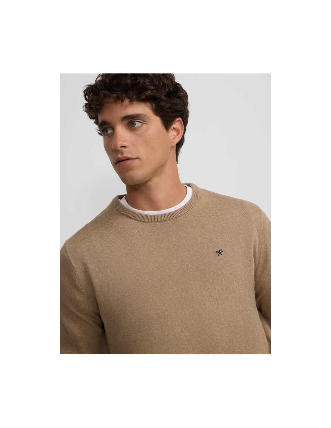 Jersey classic cuello redondo beige oscuro