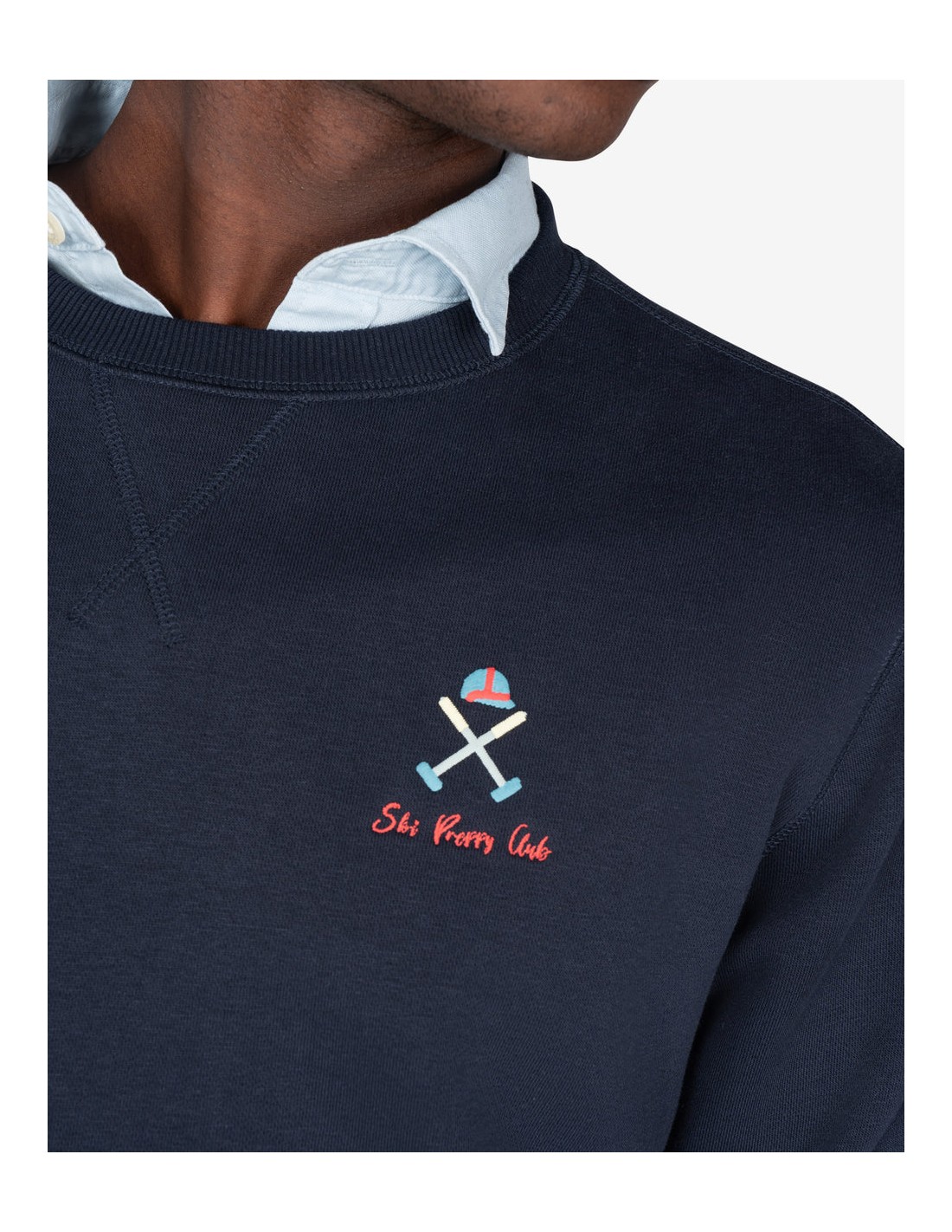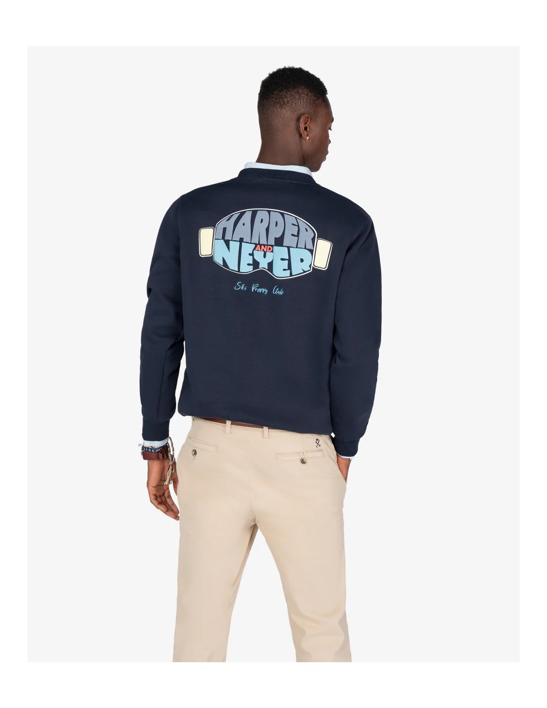 Harper & NeyerSudadera de cuello redondo confeccionada en mezcla de algodón y suave felpa perchada, con remates acanalados a contraste y detalle bordado en el pecho. En la espalda, destaca un gráfico retro con volumen y textura que reinterpreta el estilo alpino con un toque divertido. Una prenda perfecta para relajarte tras una jornada en la montaña. Combínala con joggers, chaleco acolchado y gorro de lana para completar el look après-ski con actitud.
