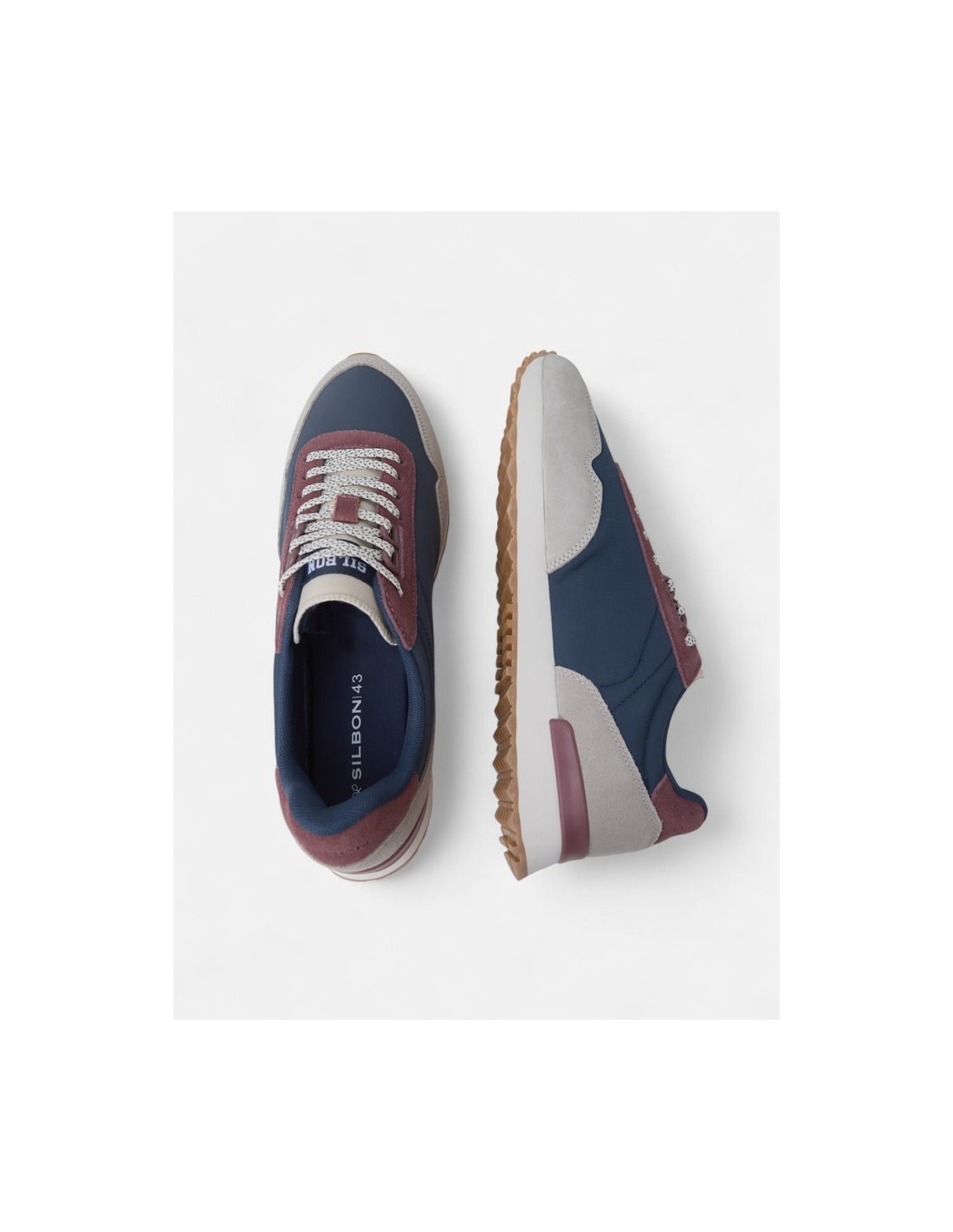 Zapatilla running relax multicolor marina. Presenta aplique de raqueta lateral y cierre con cordones. Cuenta con suela de goma confortable, interior en piel suave, etiqueta personalizada en lengüeta y letras SILBON grabadas en la parte trasera.